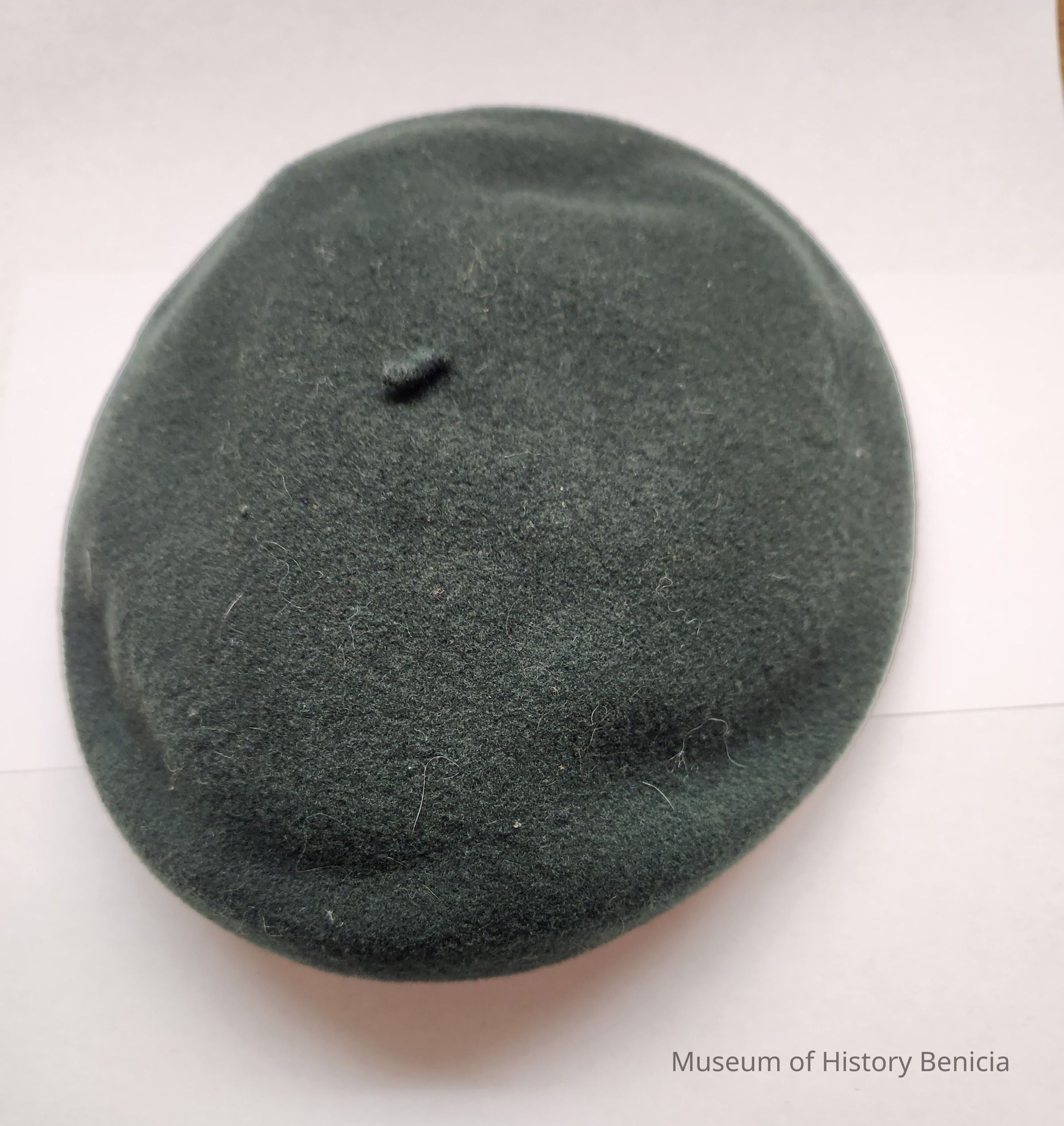 Green Girl Scout Uniform Beret that has a small loop at the center top.