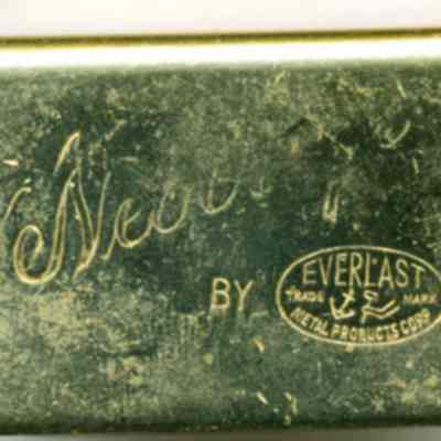 A match box holder made of brass. It has an Everlast stamp on one side and a style name that has been worn off. The face shows two men one with a helmet. Looks kind of like Greek warriors. The item is only 1.75" x 1" x .75".Collection