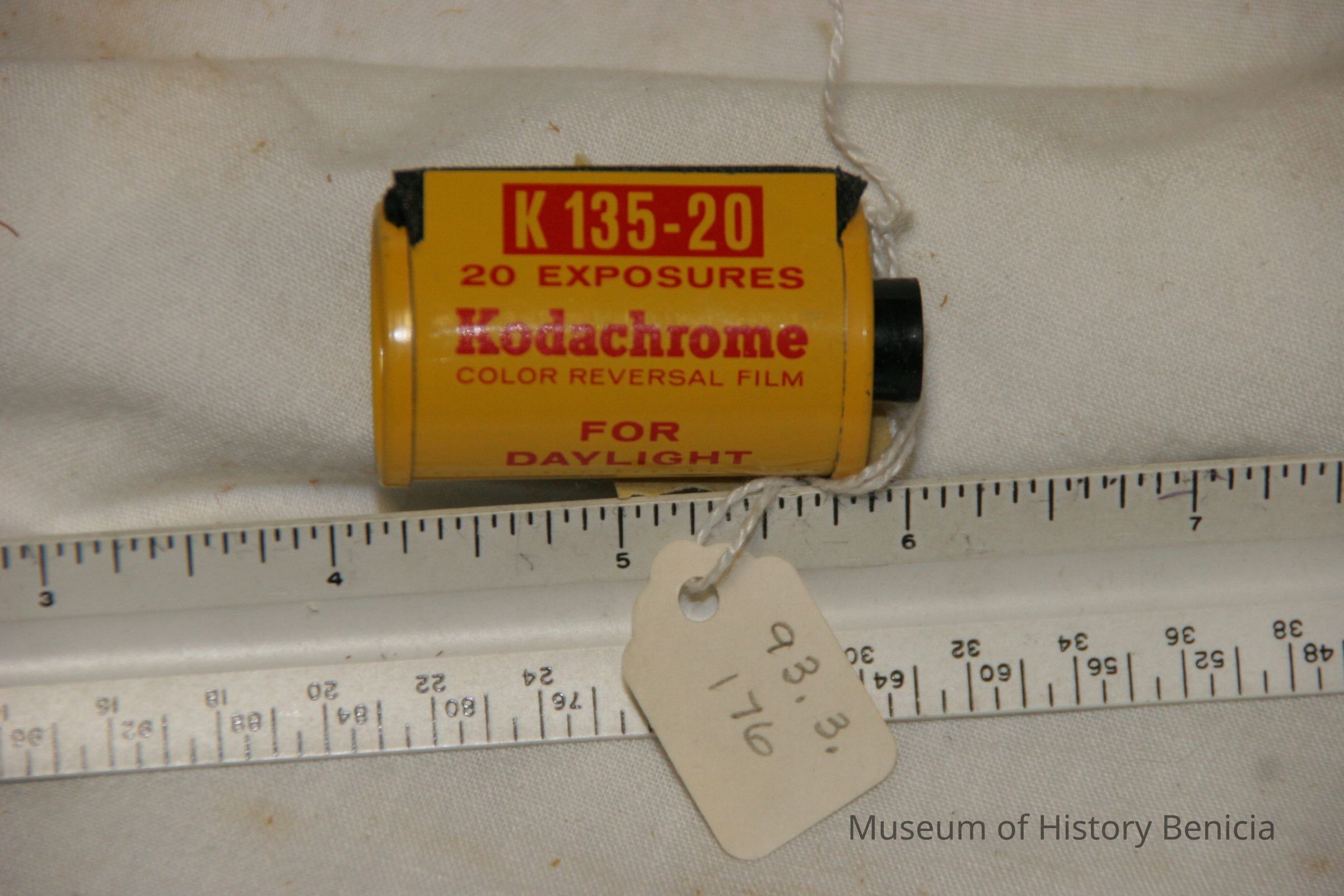 Film holder for KF 135-20, 20 exposures Kodachrome color reversal film. For daylight use. red and yellow cylinder.