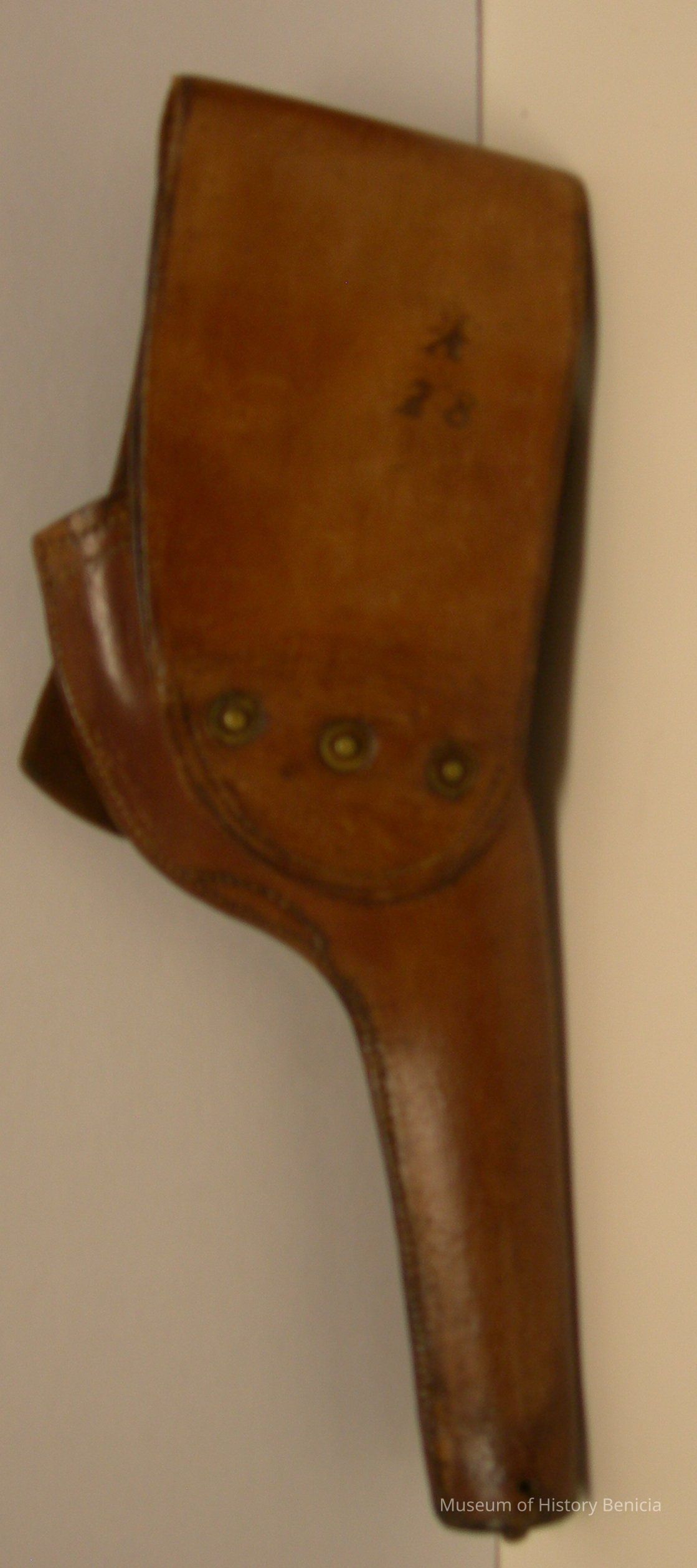 markings: on front flap: "U.S. Arsenal Benicia"; on belt loop: "A 28"; under flap: "O" and another indistinct letter; on front below the flap closure: "US";