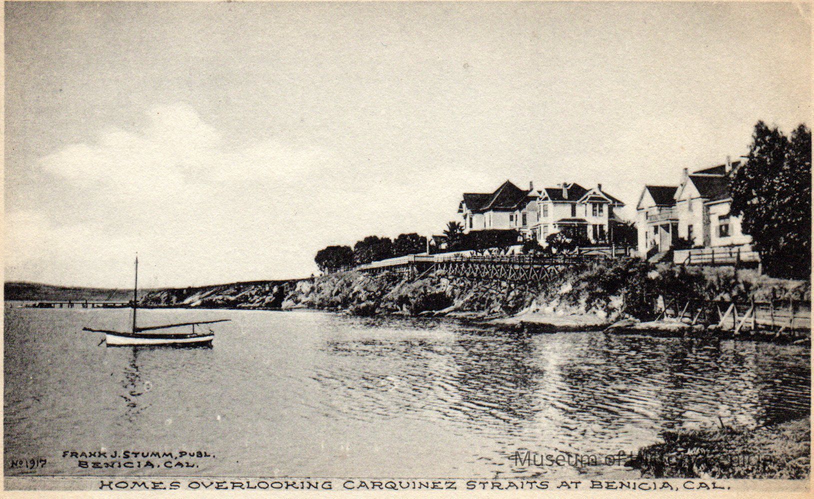 B/W image taken by Frank J. Stumm "Homes overlooking Carquinez Straits at Benicia, Calif"