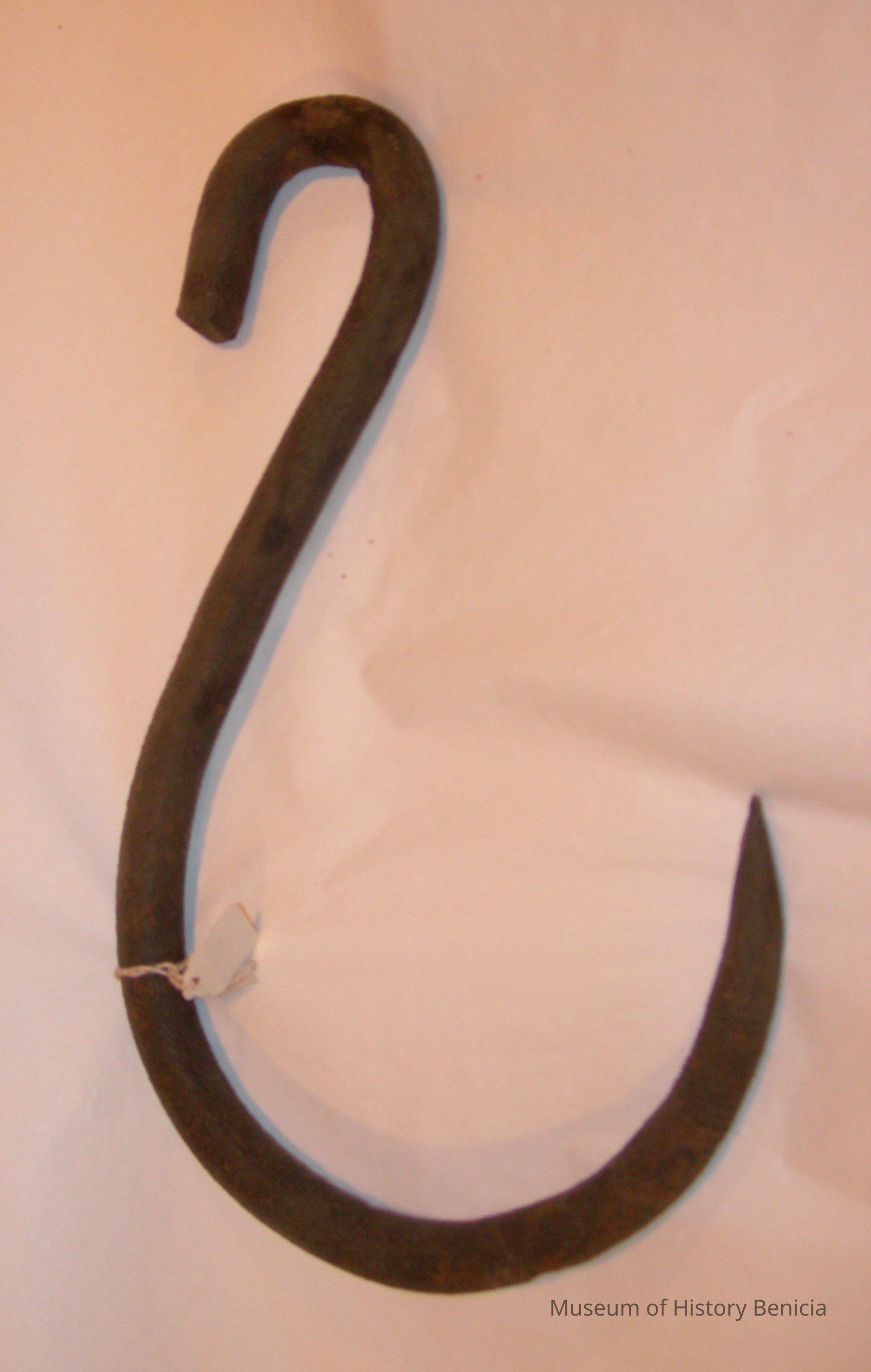 large heavy utility hook most likely used in farming; "s" shaped pointed on one end
