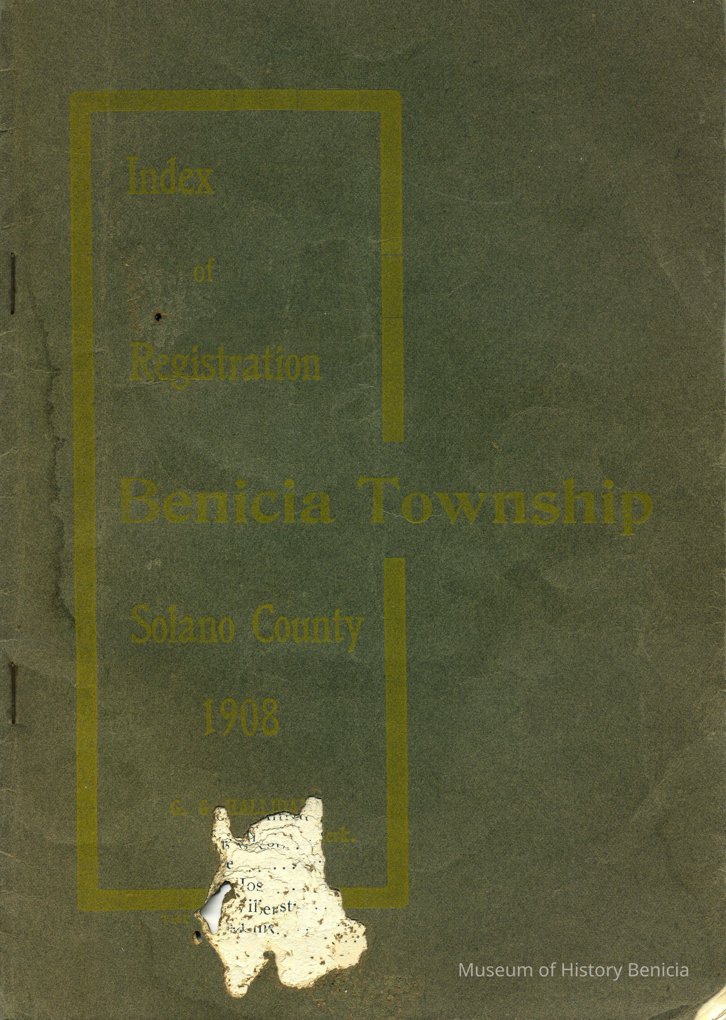 "Index of Registration, Benicia Township, Solano County 1908"