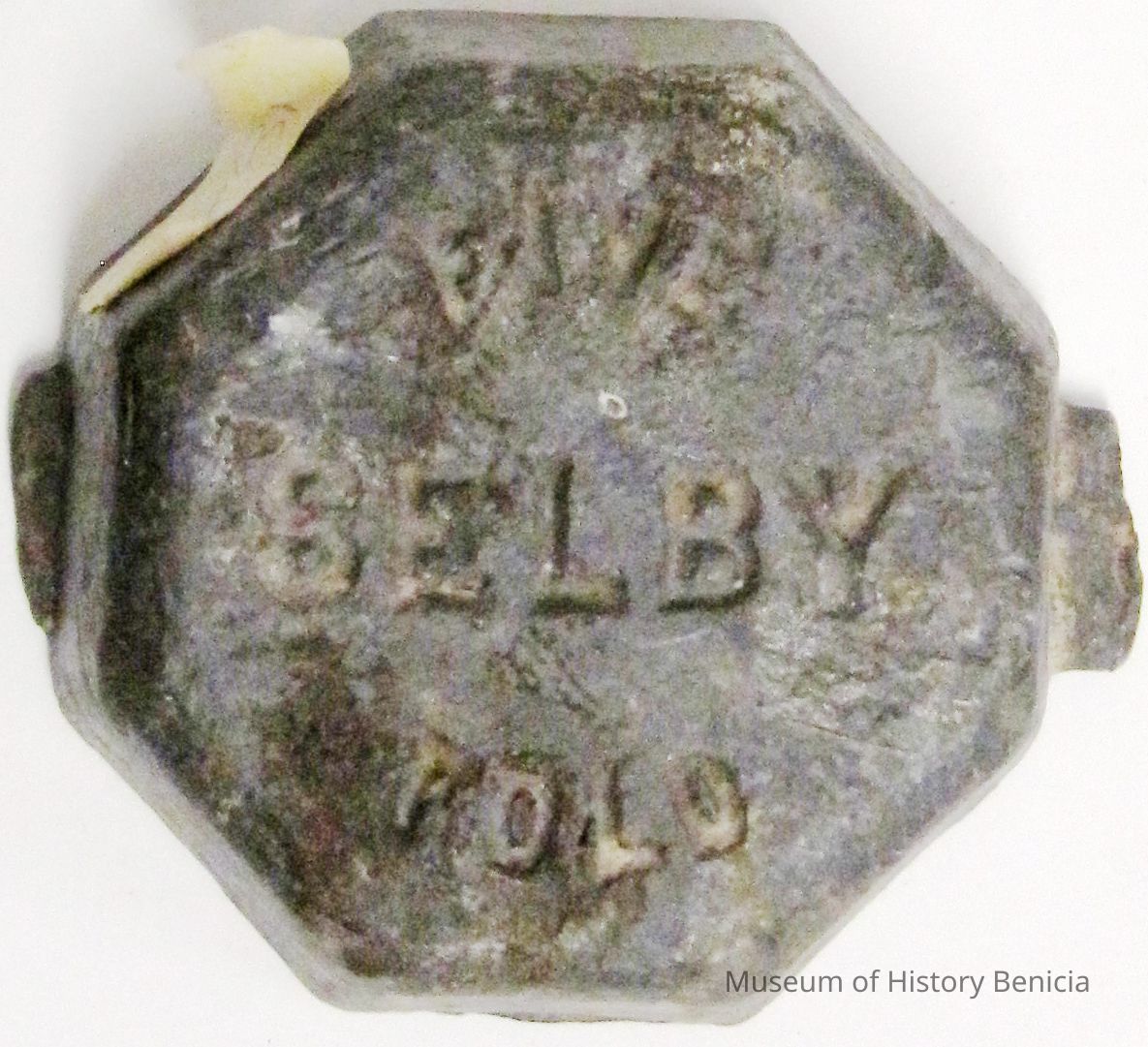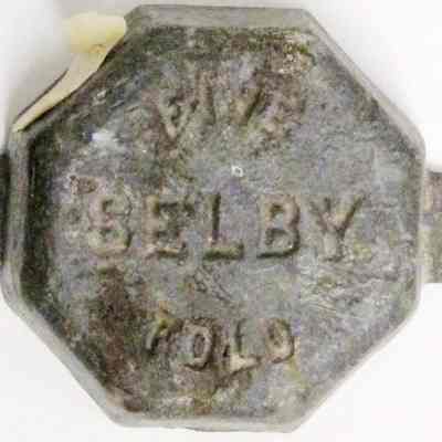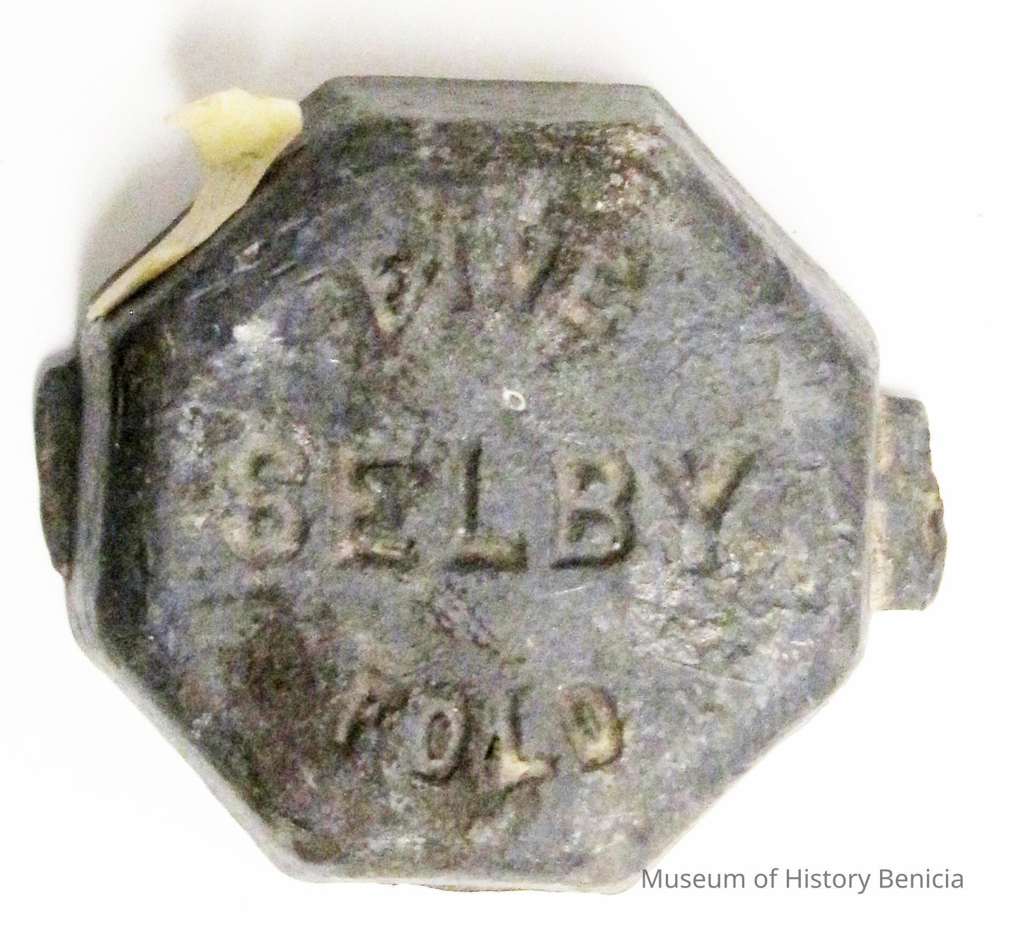 This is an ingot from the Selby smelter across the Straits from Benicia. The top says "Five Fold" around the outside and "Selby in the center.
