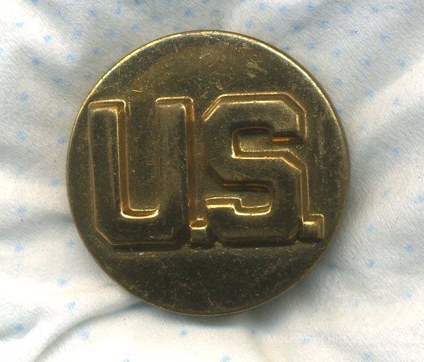Collar insignia - round brass button - "U.S." with double clutch back; 1" diameter