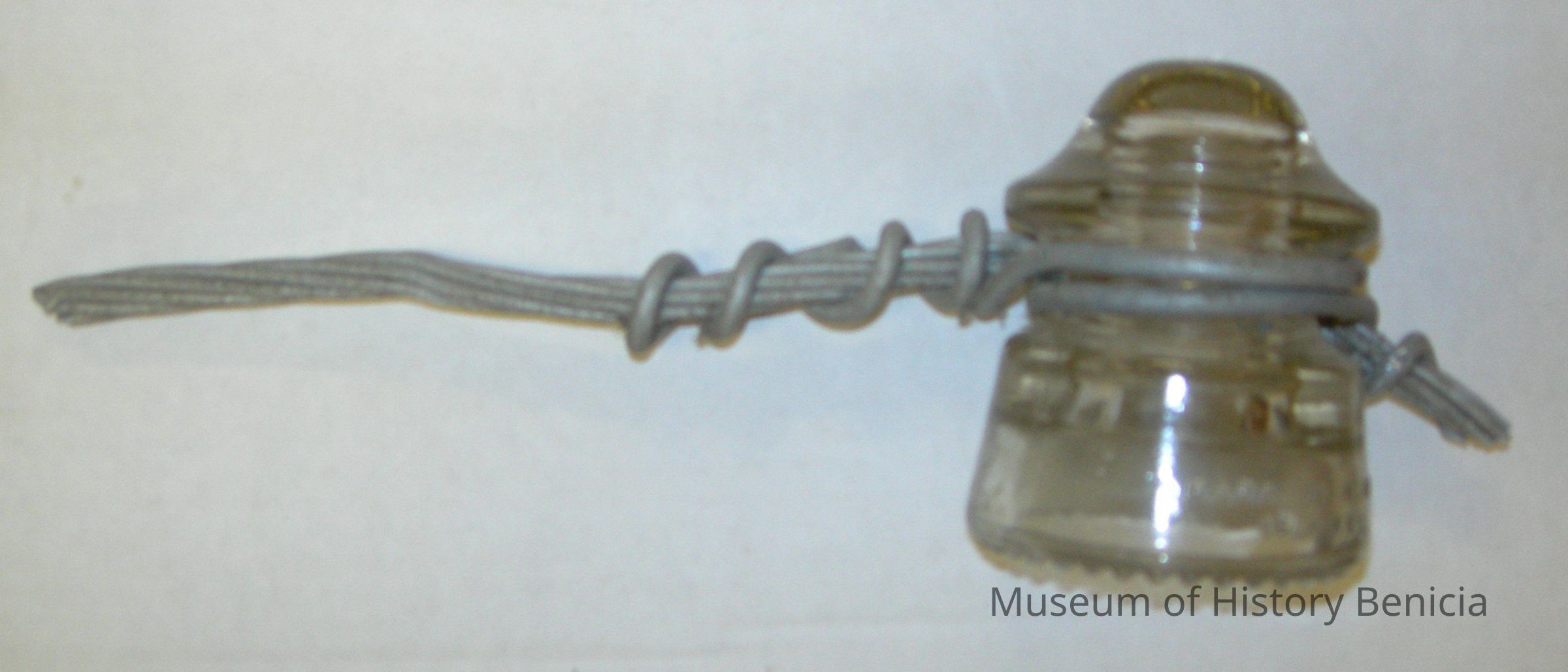 clear glass insulator with piece of wire attached