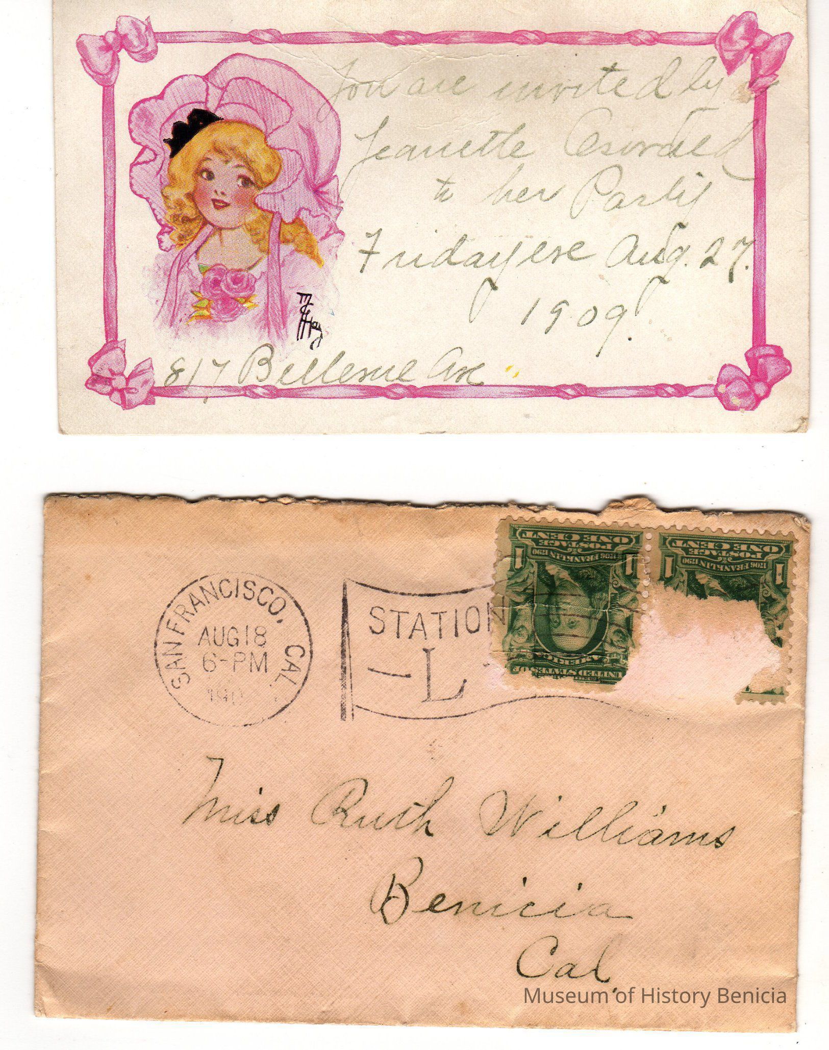 to her Party Friday eve Aug 27 1909 817 Bellevue Ave (S.F.)