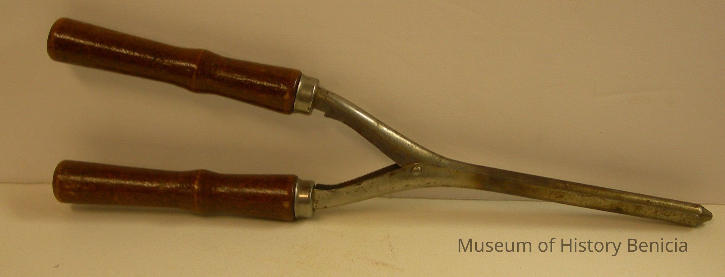 two brown wood handles; "Made in USA" stamped near handle;