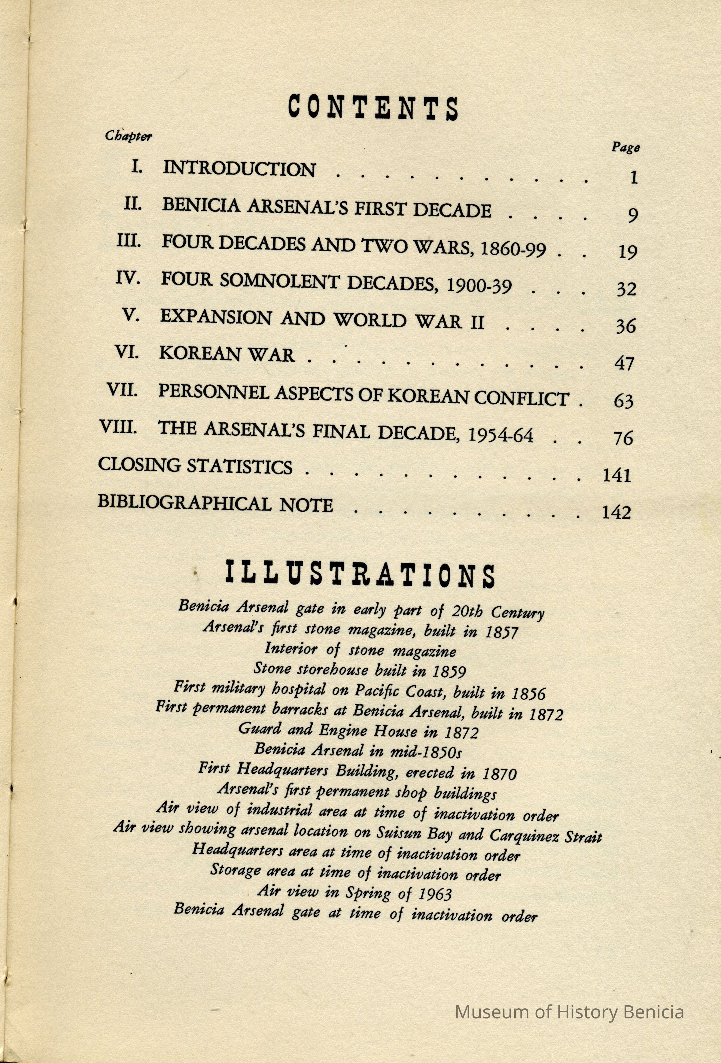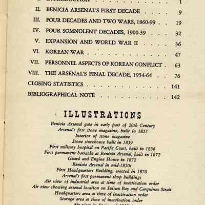 The book traces the history of the U.S. Arsenal at Benicia from 1951 to December, 1962.Collection