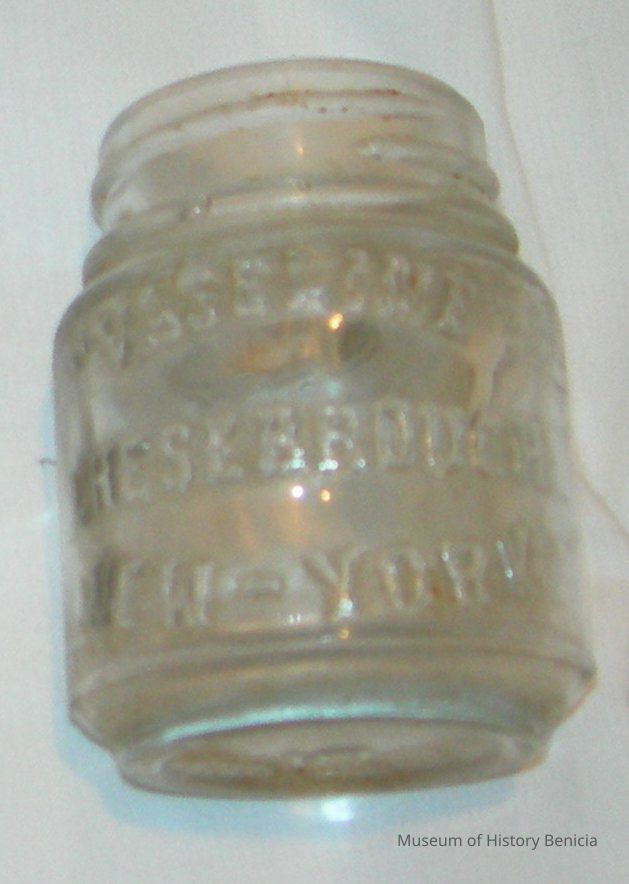 clear glass jar: "Vaseline" Chesebrough New York in raised lettering on jar
