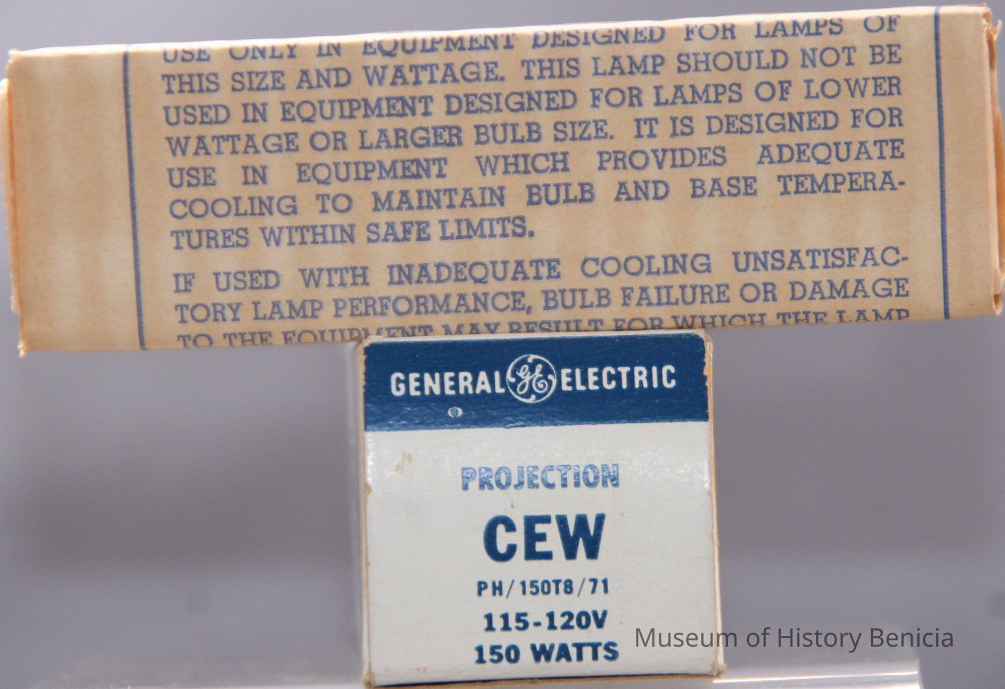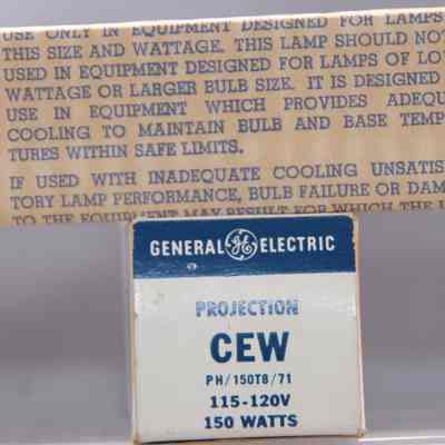 Projection lamp by General Electric. 150w bulb number PH/150T8/71 115-120V (CG 81-X) . Written on box is price of $2.50. In original box.