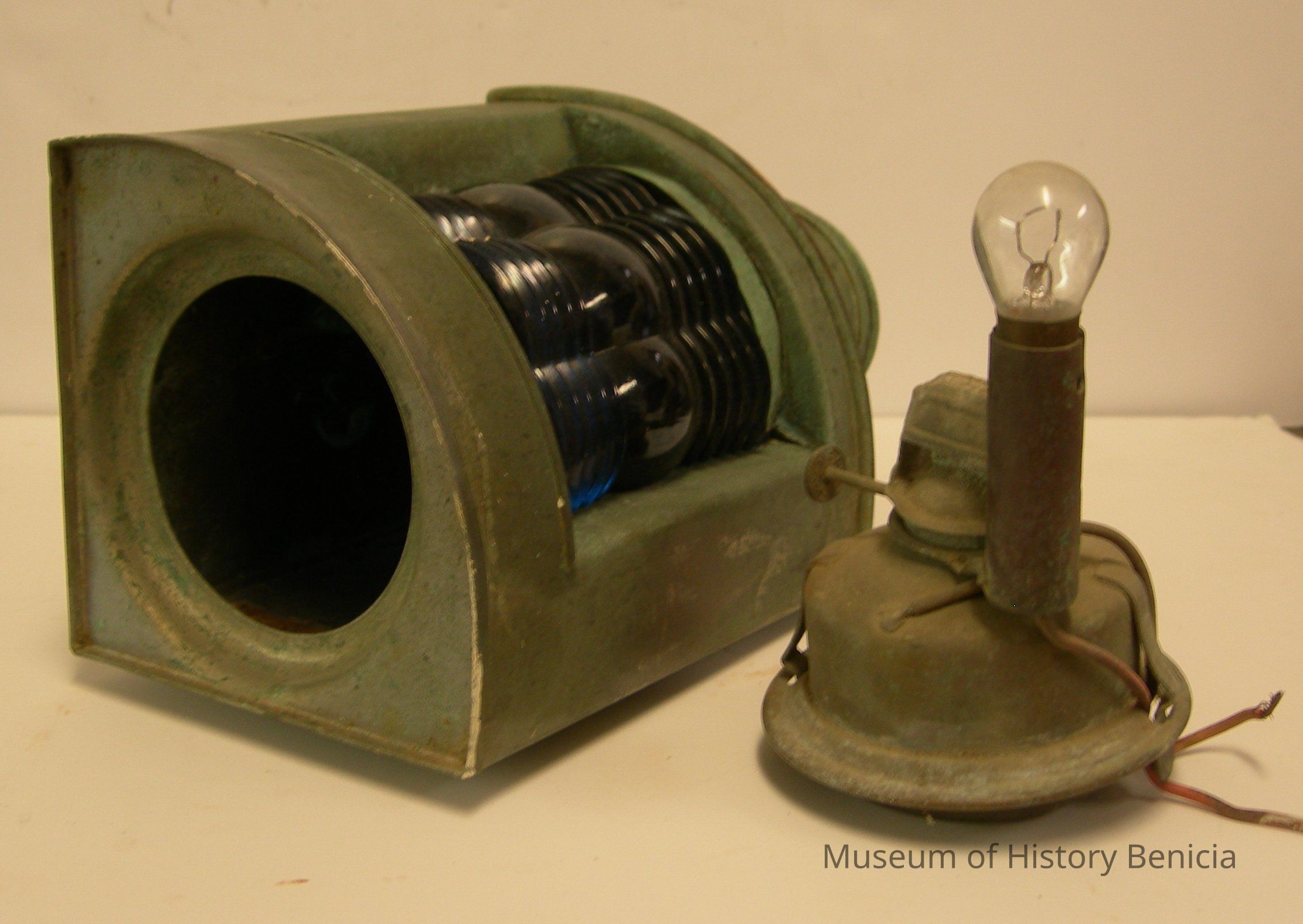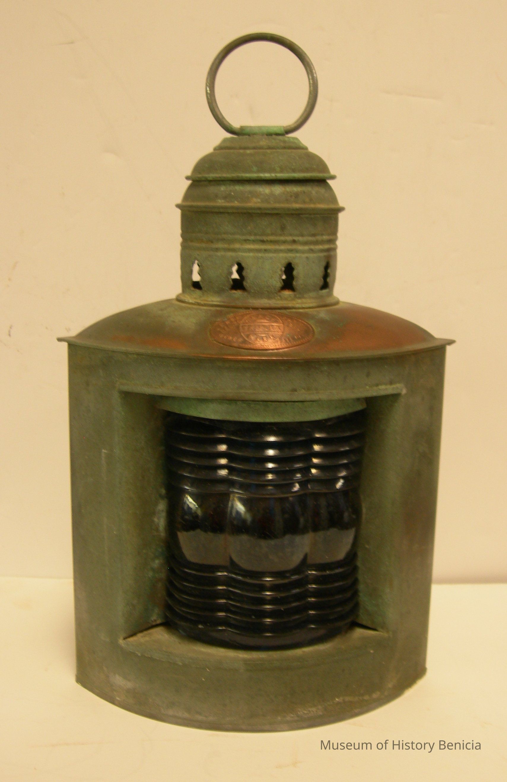 Made of copper with a blue lens (about 3-1/2" x 4").