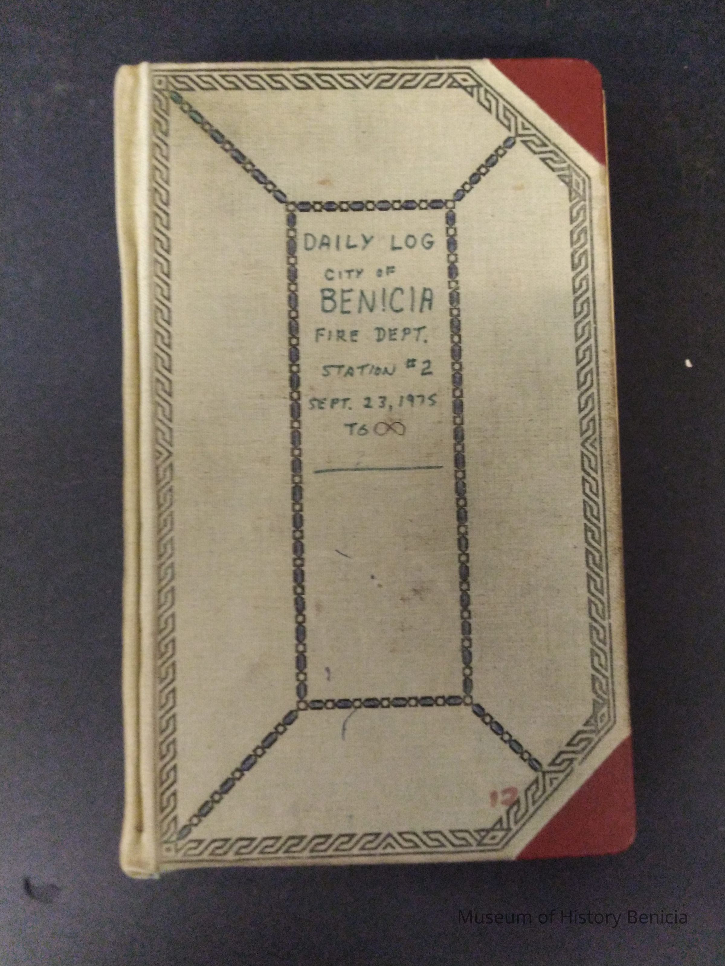 Green and Red Account book for the Daily Log of the City of Benicia Fire Dept. Station #2 Sept. 23, 1975 to 11-14-79