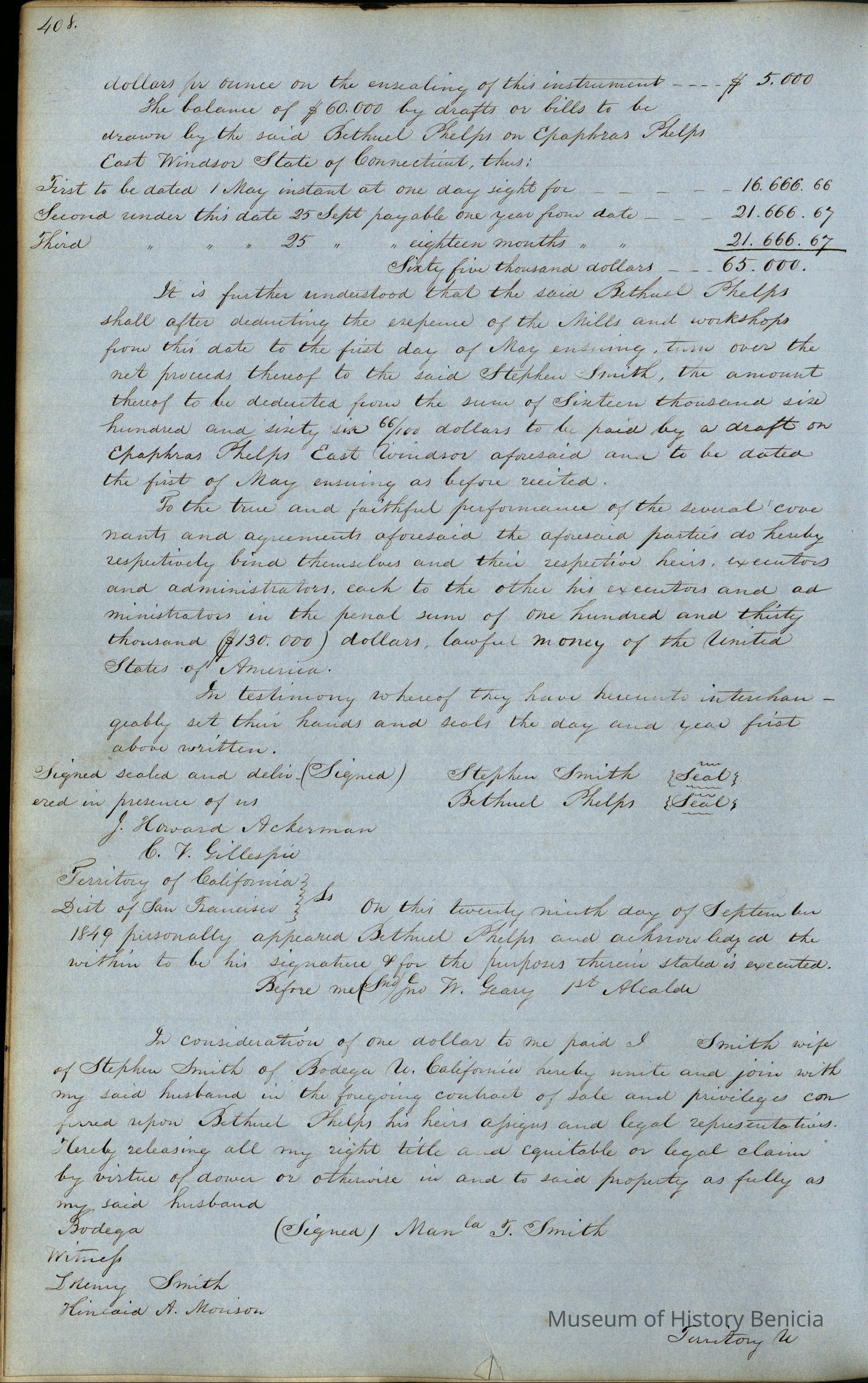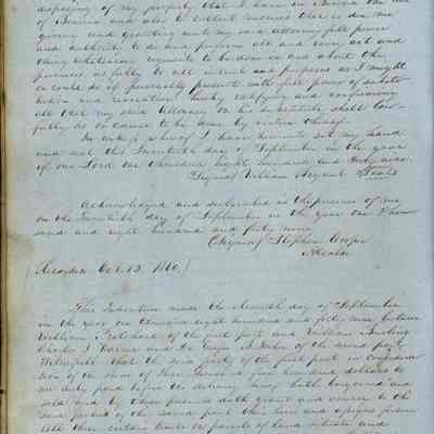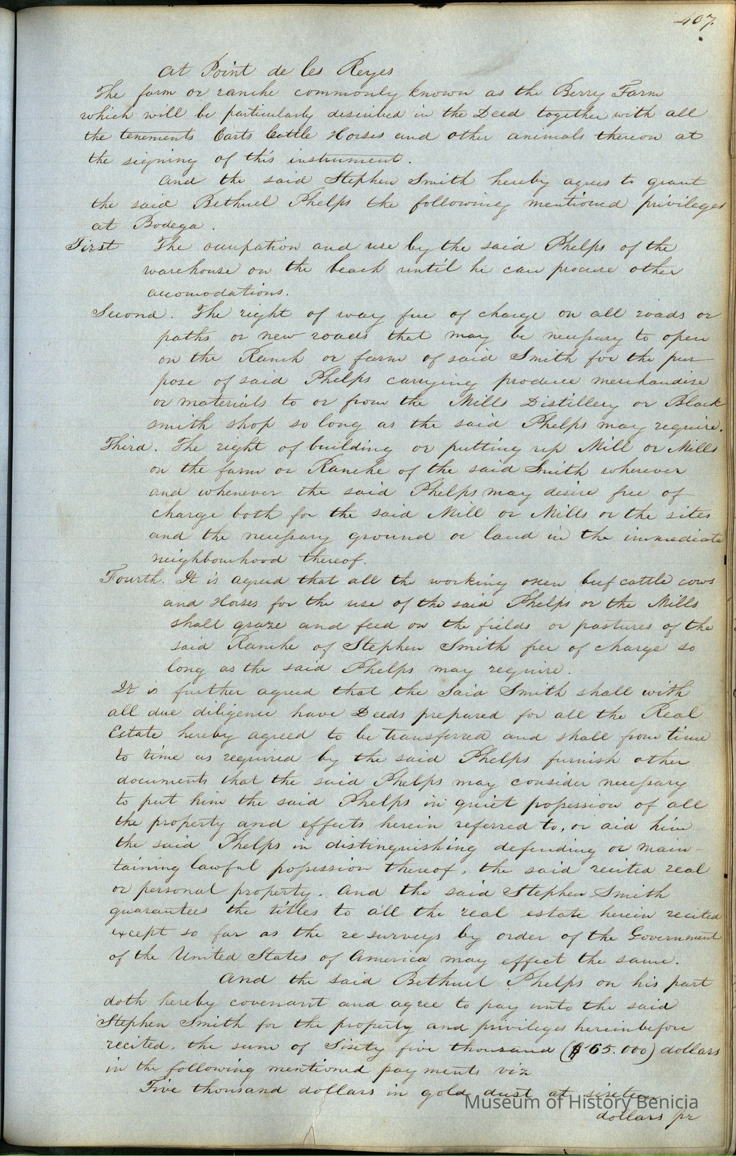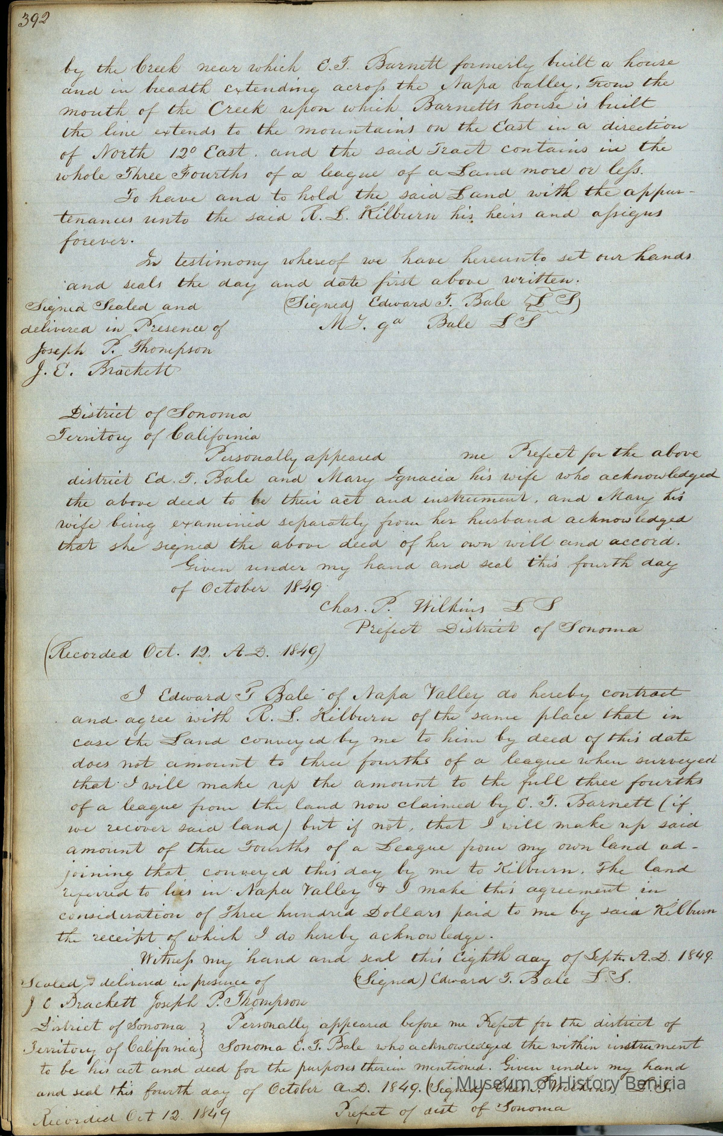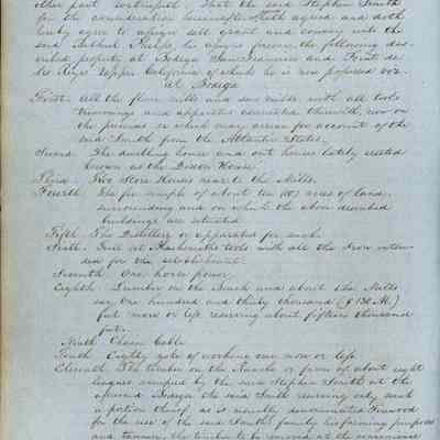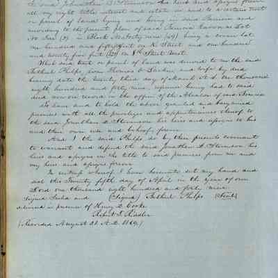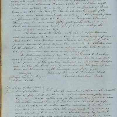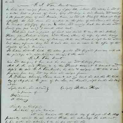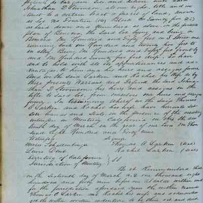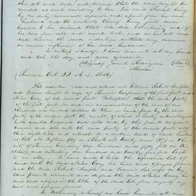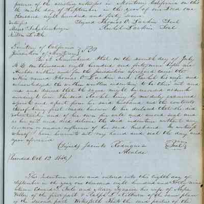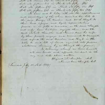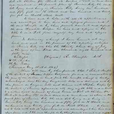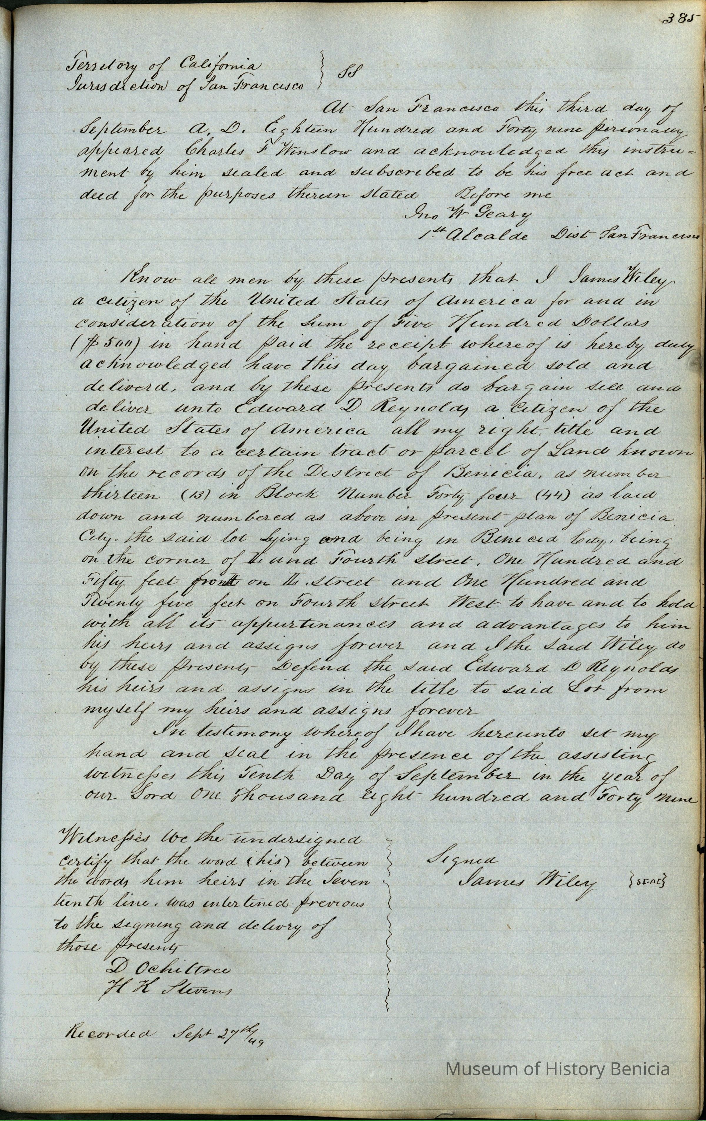 This journal/ledger contains the beginnings of Benicia including: lists and descriptions of first 12 houses in Benicia, a translation of the deed to General Vallejo by Manual Micheltorena, Governor of Calif. (1844); deed to Semple and Larkin by Vallejo (1847); deeds of properties sold by Semple and Larkin from 1847 - 1849