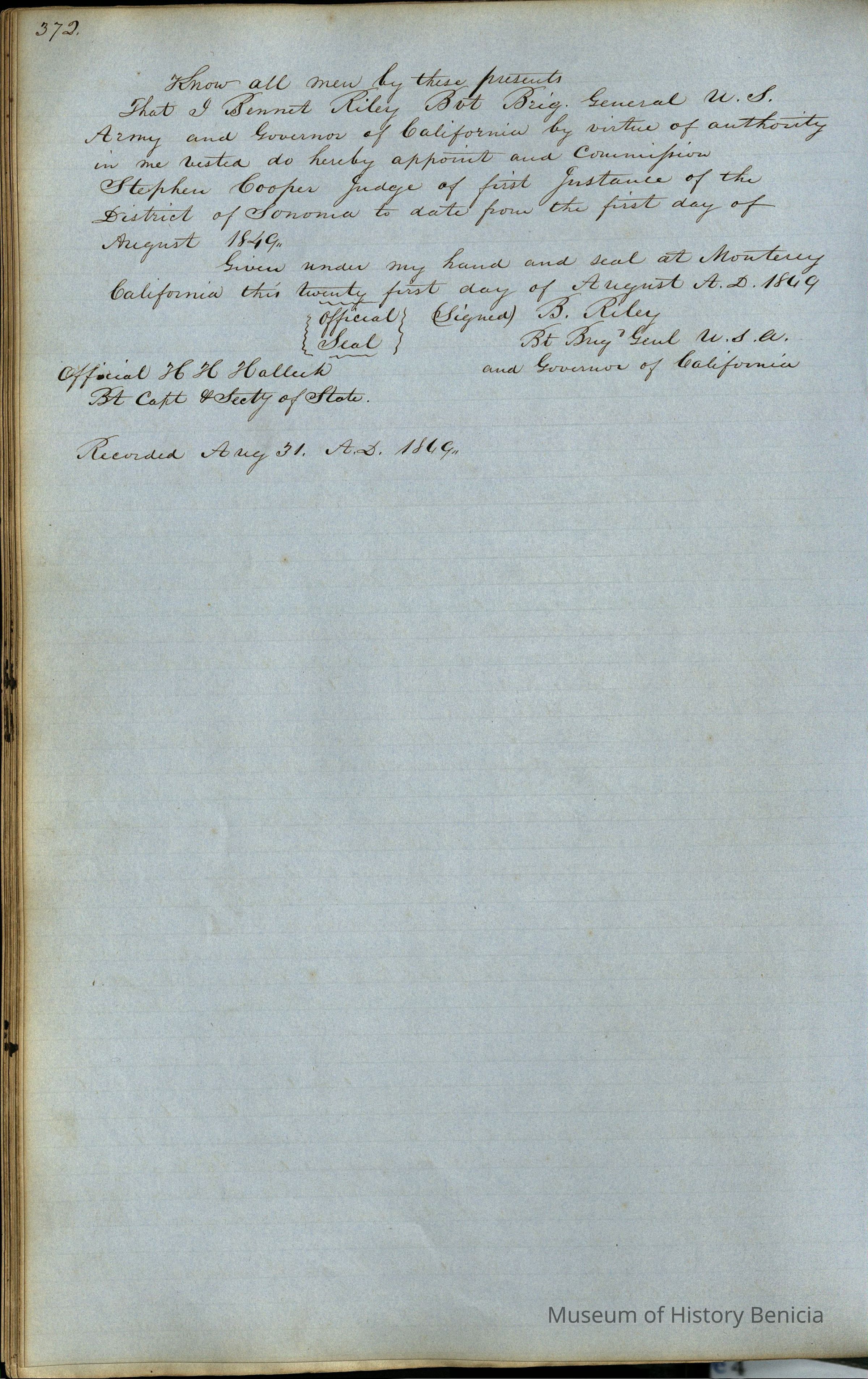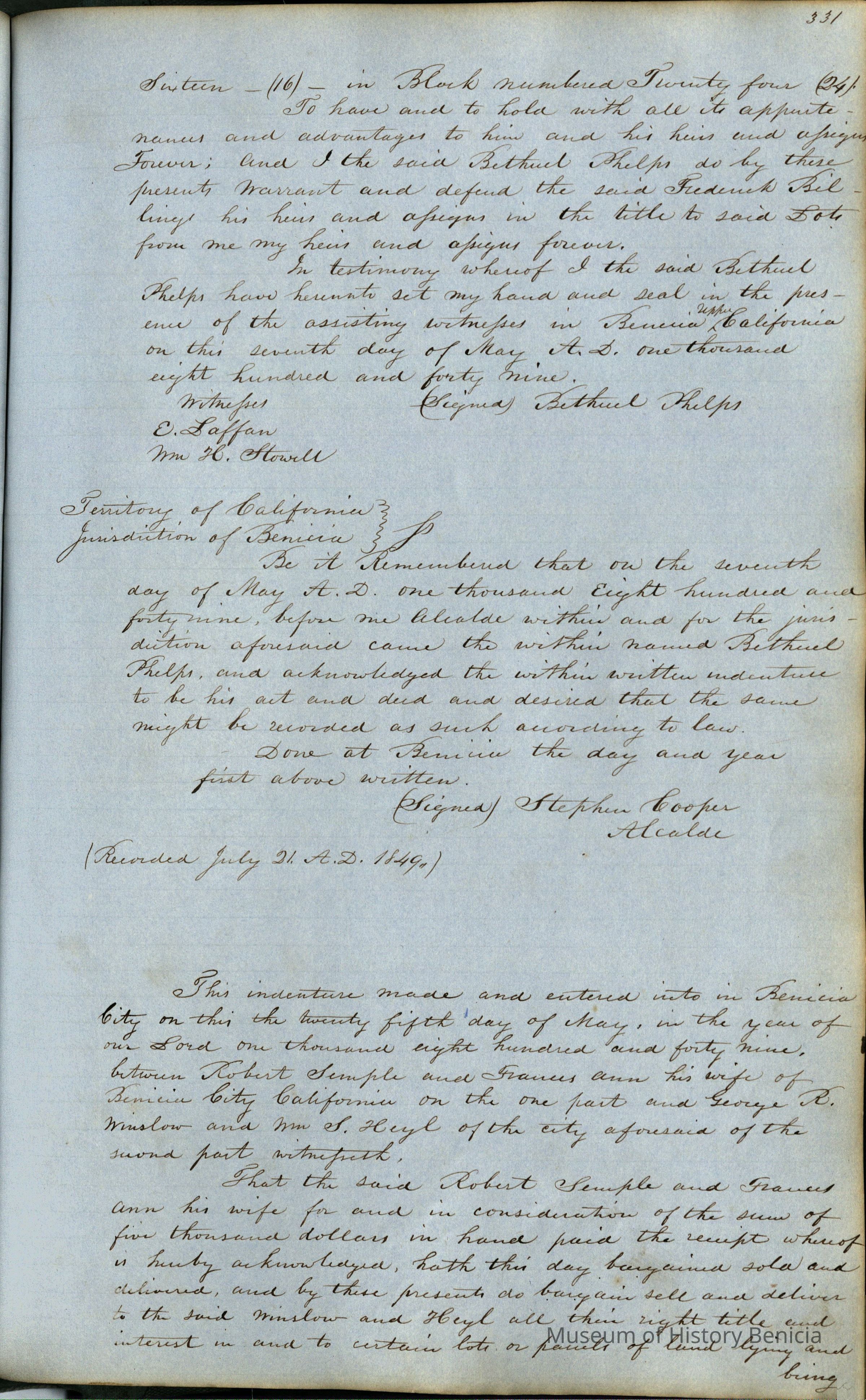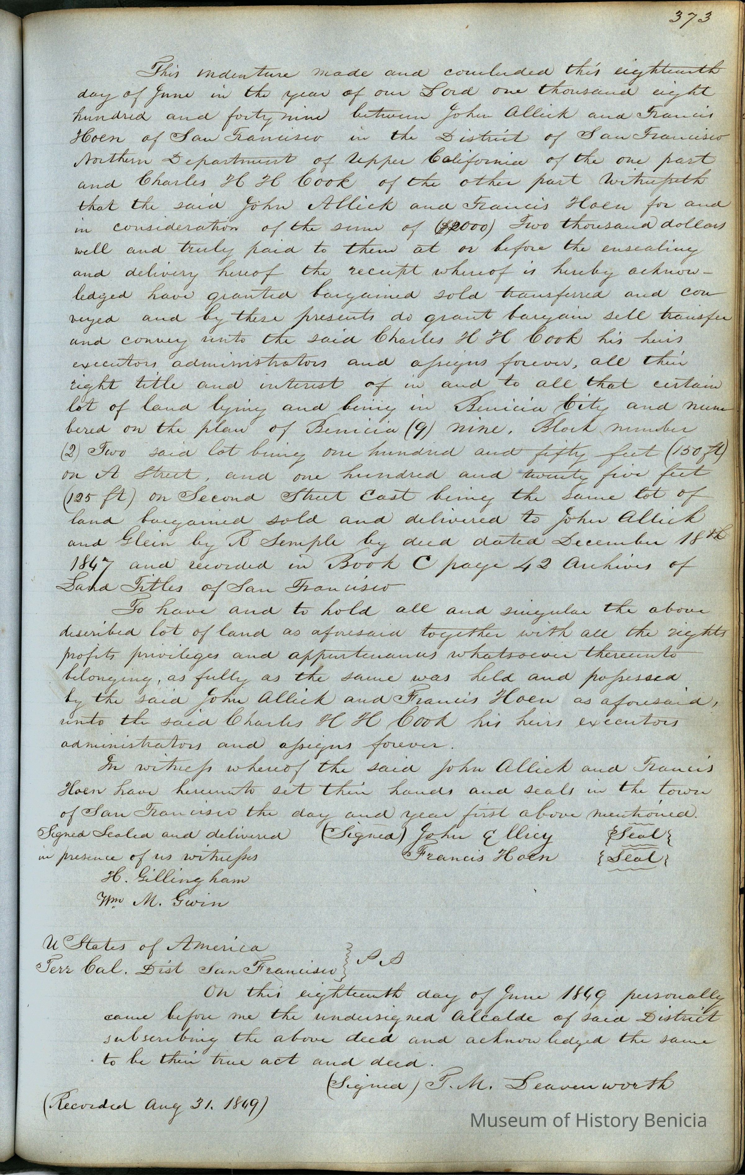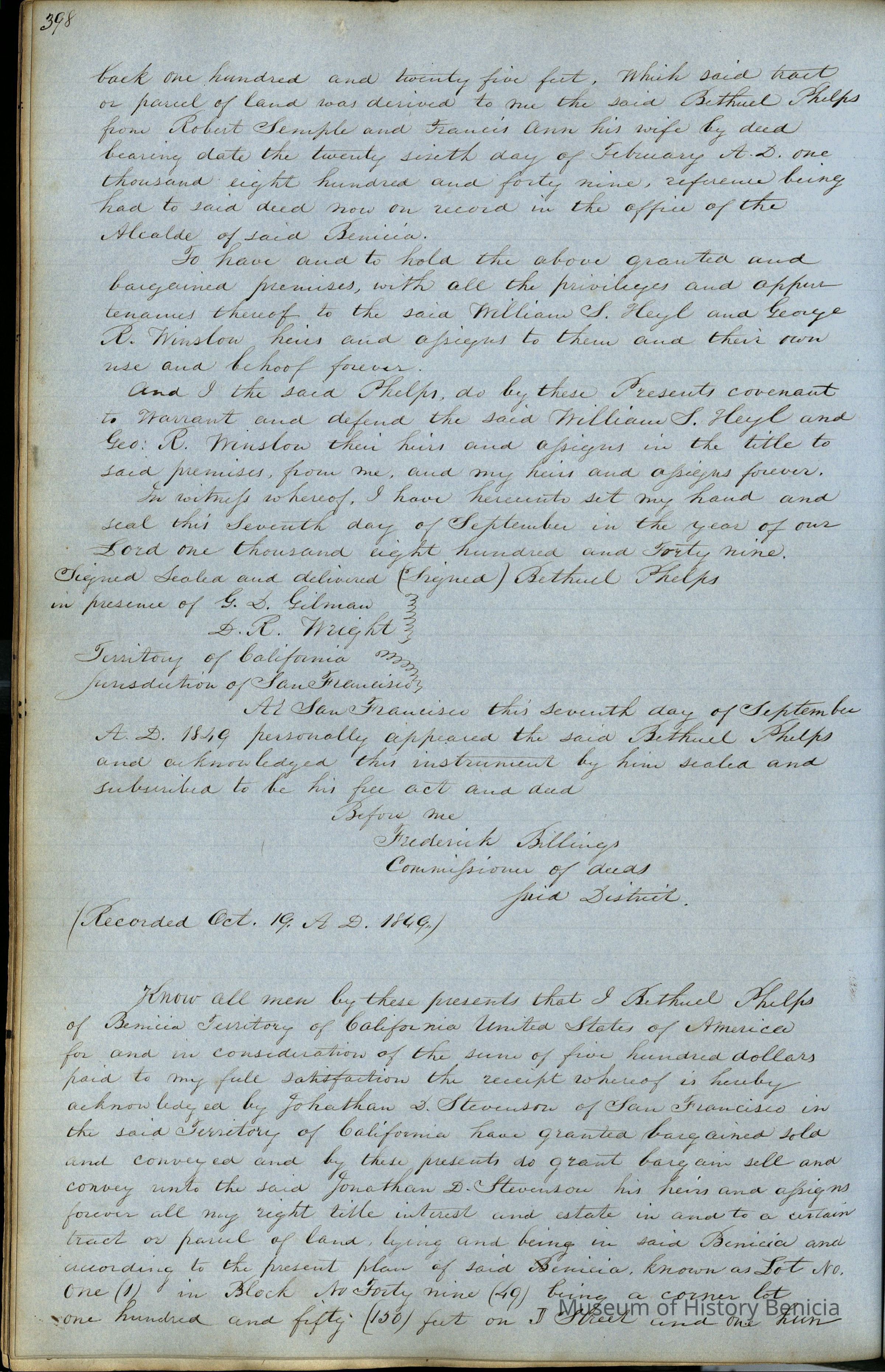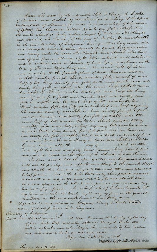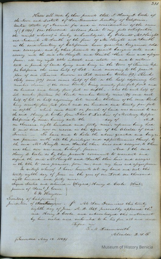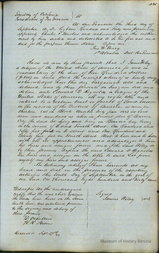 "Records of Benicia / 1847 1849 / Solano County