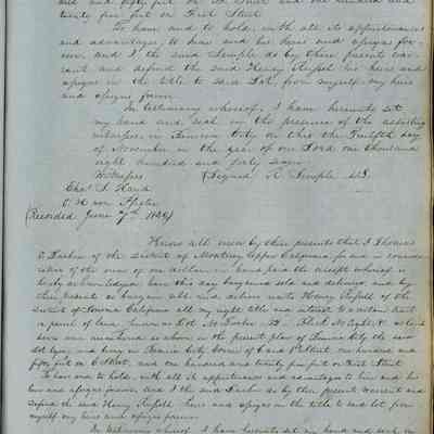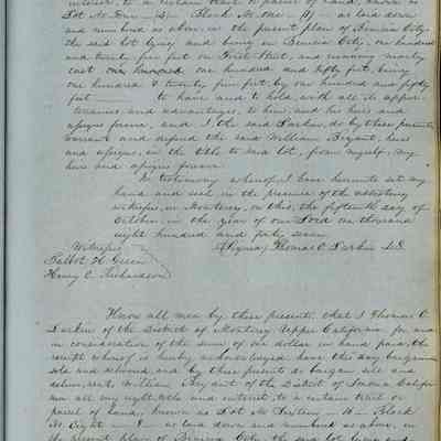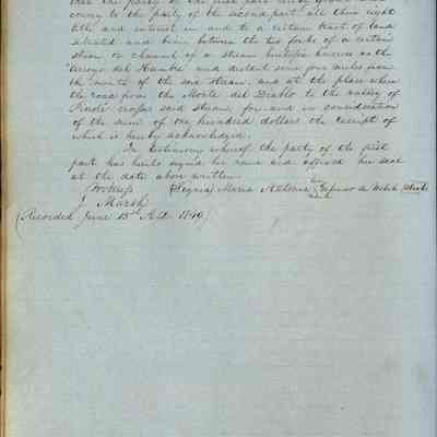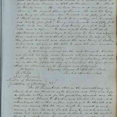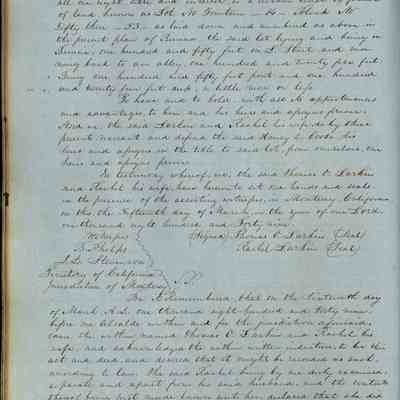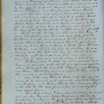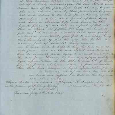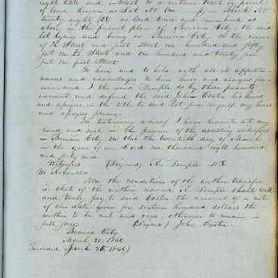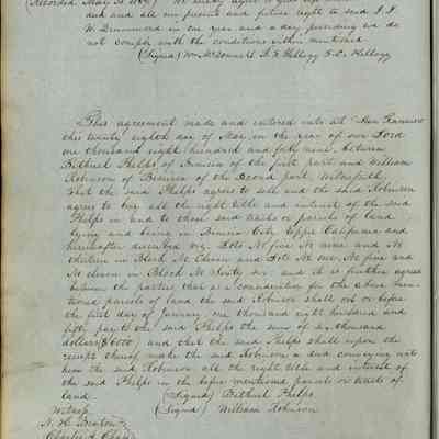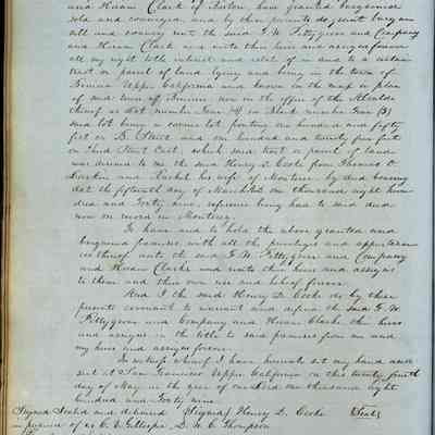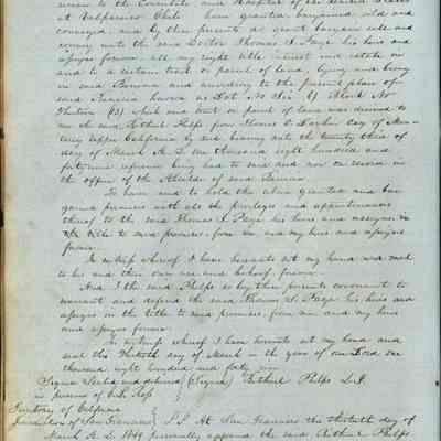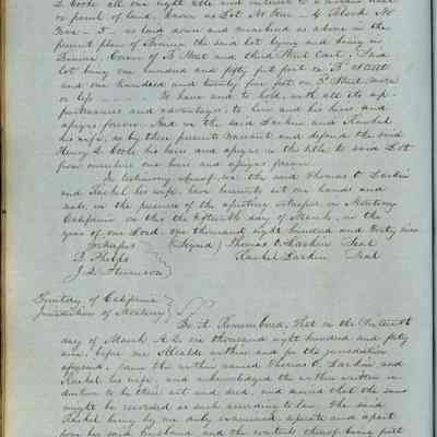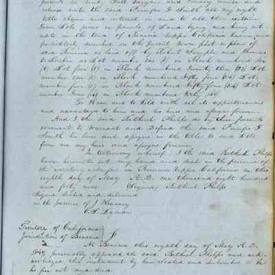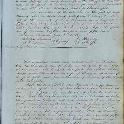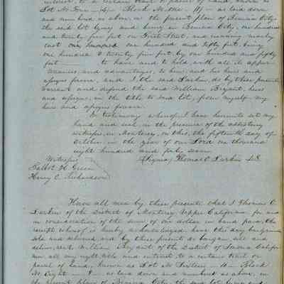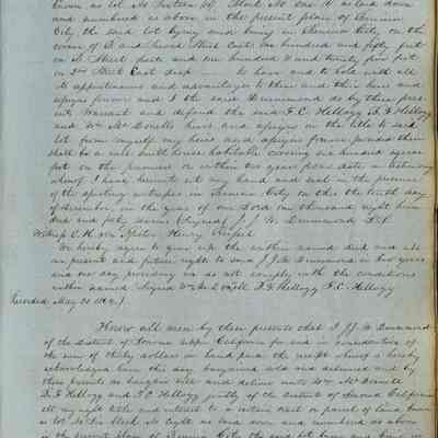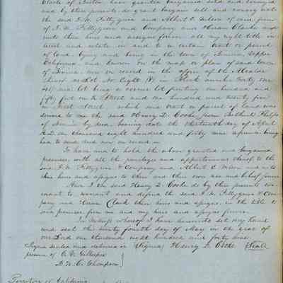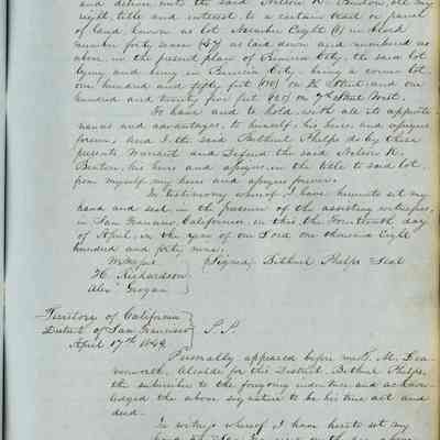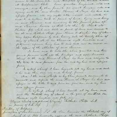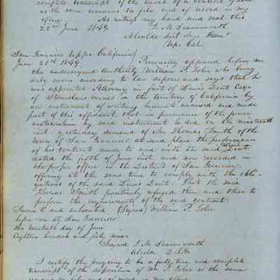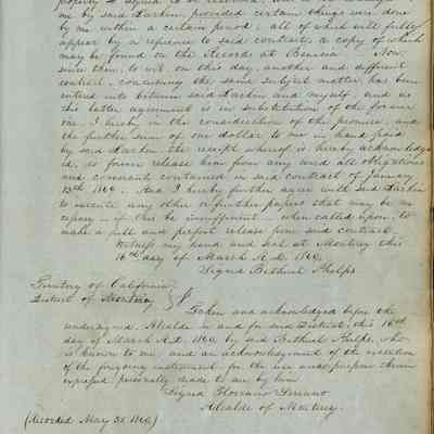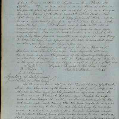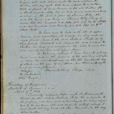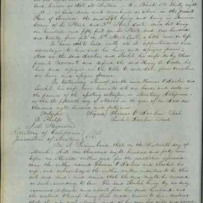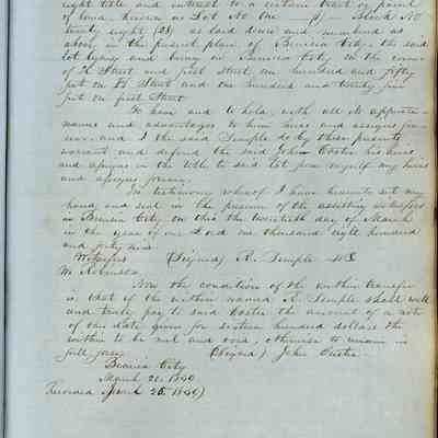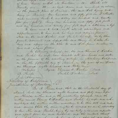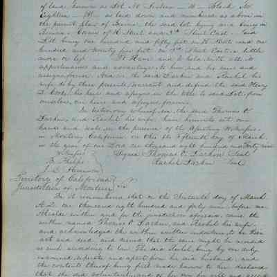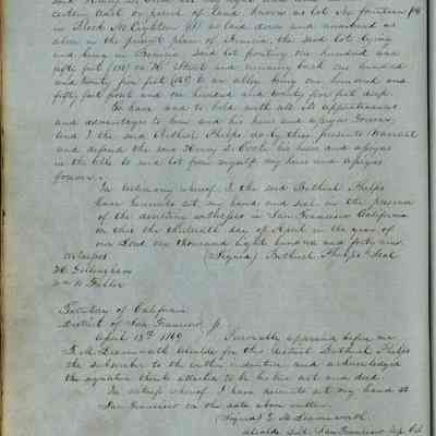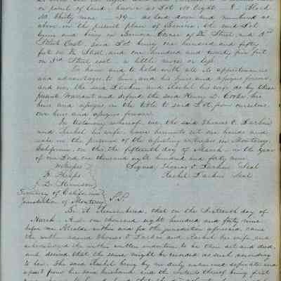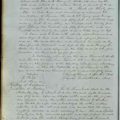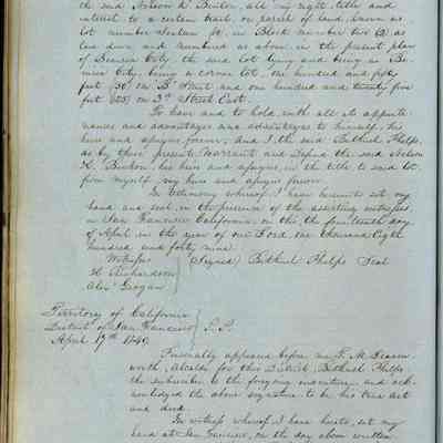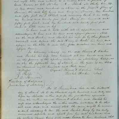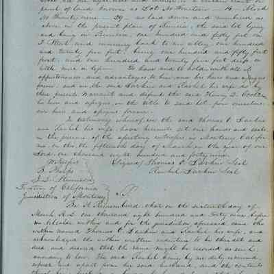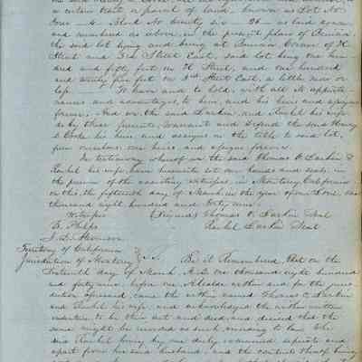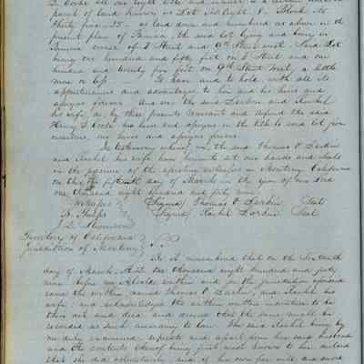 This journal/ledger contains the beginnings of Benicia including: lists and descriptions of first 12 houses in Benicia, a translation of the deed to General Vallejo by Manual Micheltorena, Governor of Calif. (1844); deed to Semple and Larkin by Vallejo (1847); deeds of properties sold by Semple and Larkin from 1847 - 1849