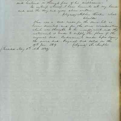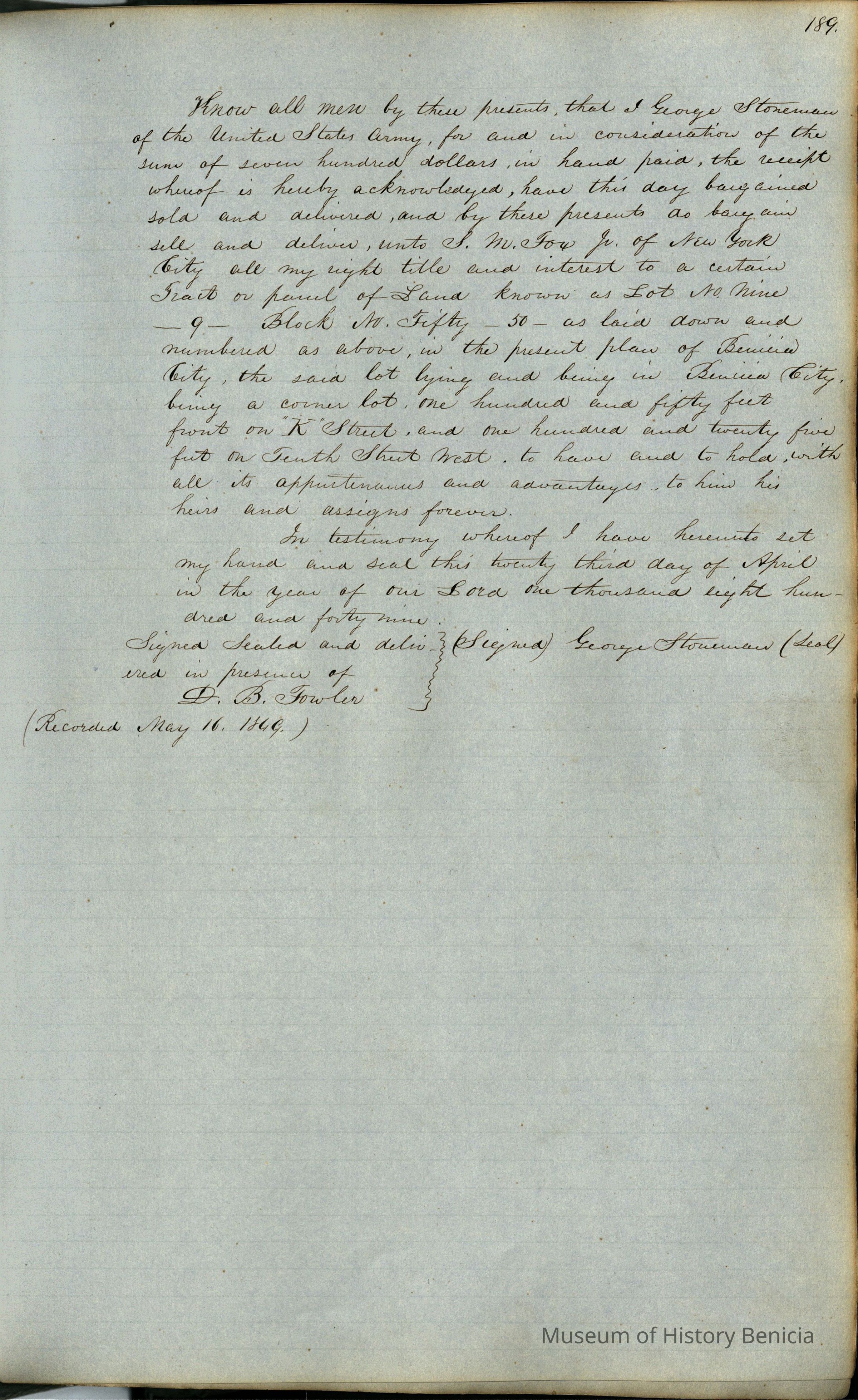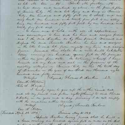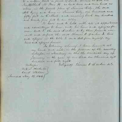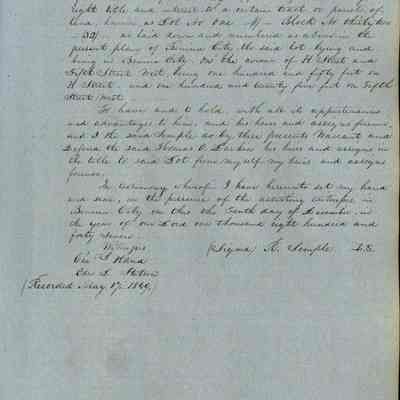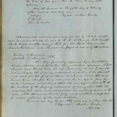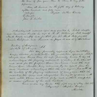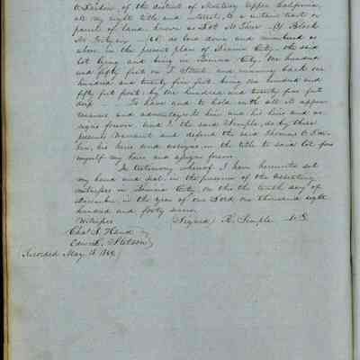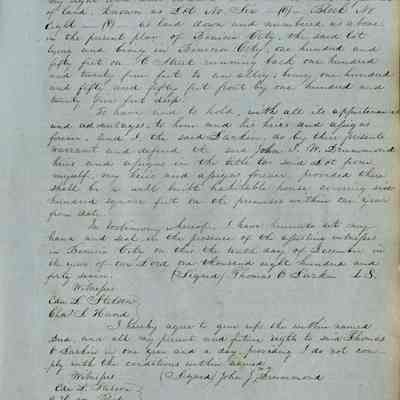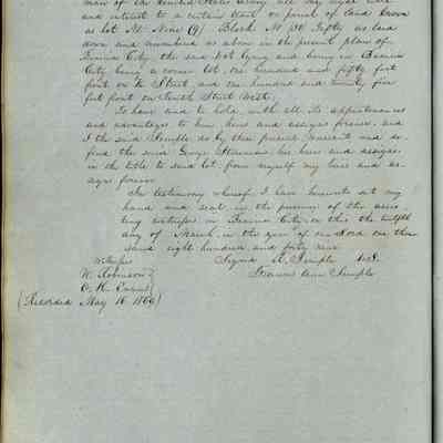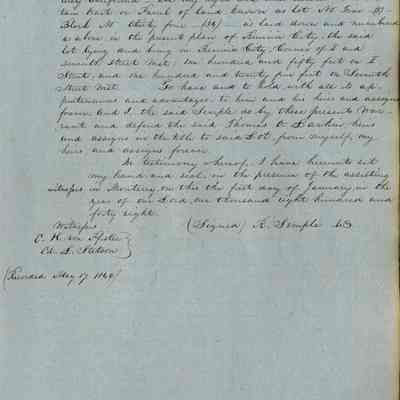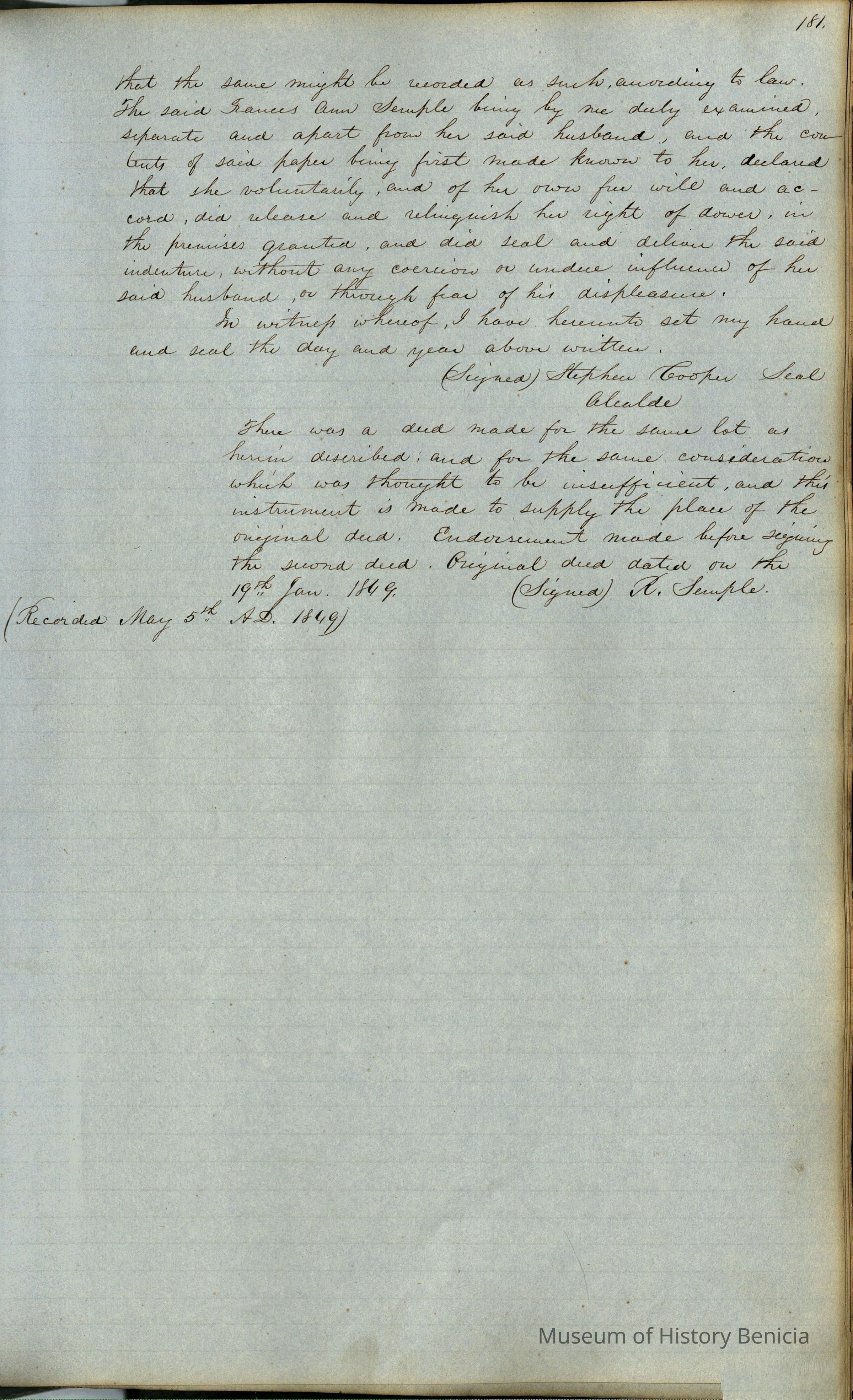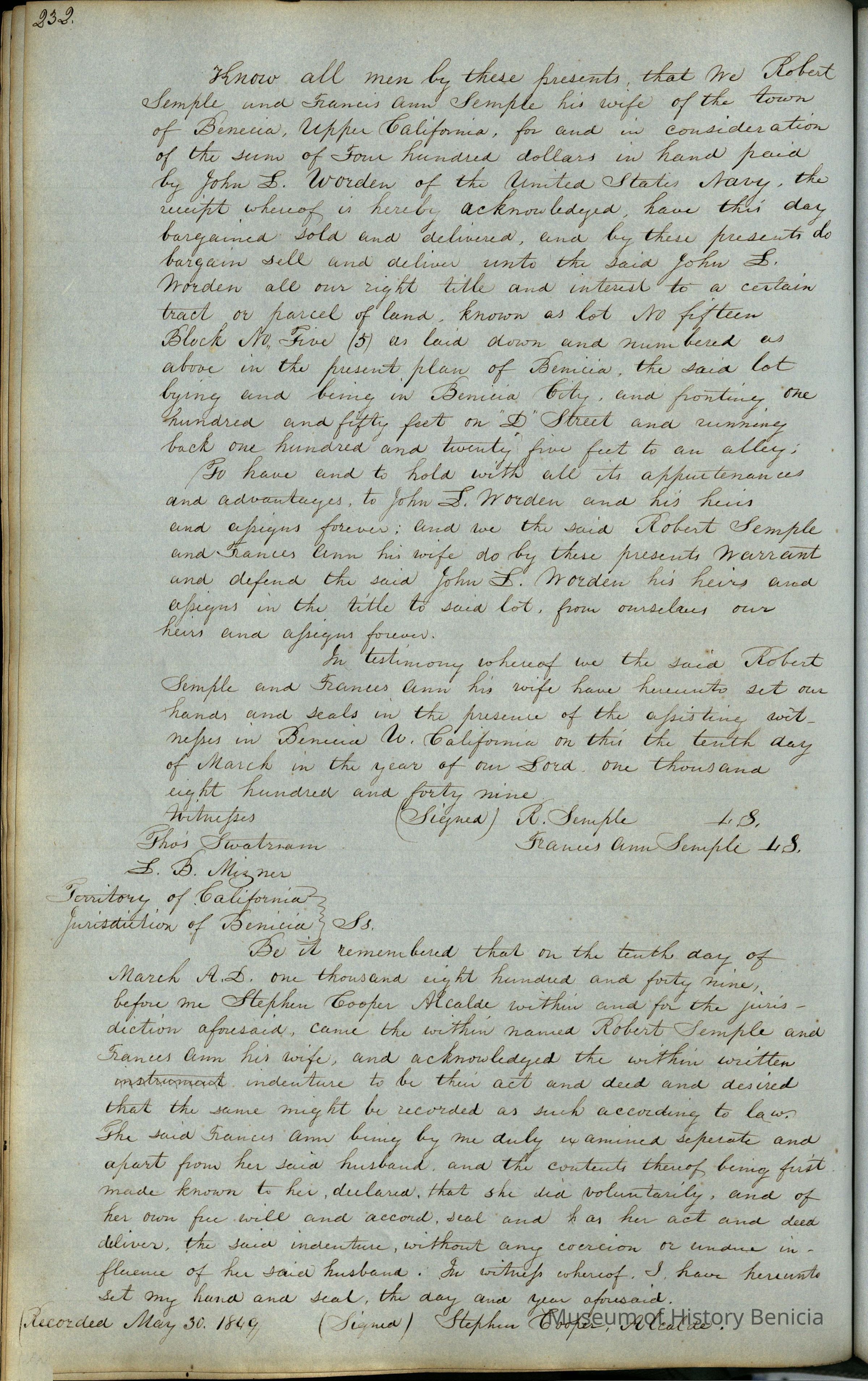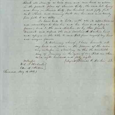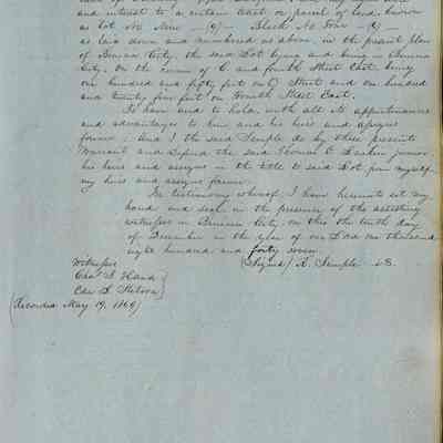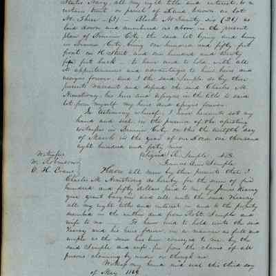 This journal/ledger contains the beginnings of Benicia including: lists and descriptions of first 12 houses in Benicia, a translation of the deed to General Vallejo by Manual Micheltorena, Governor of Calif. (1844); deed to Semple and Larkin by Vallejo (1847); deeds of properties sold by Semple and Larkin from 1847 - 1849