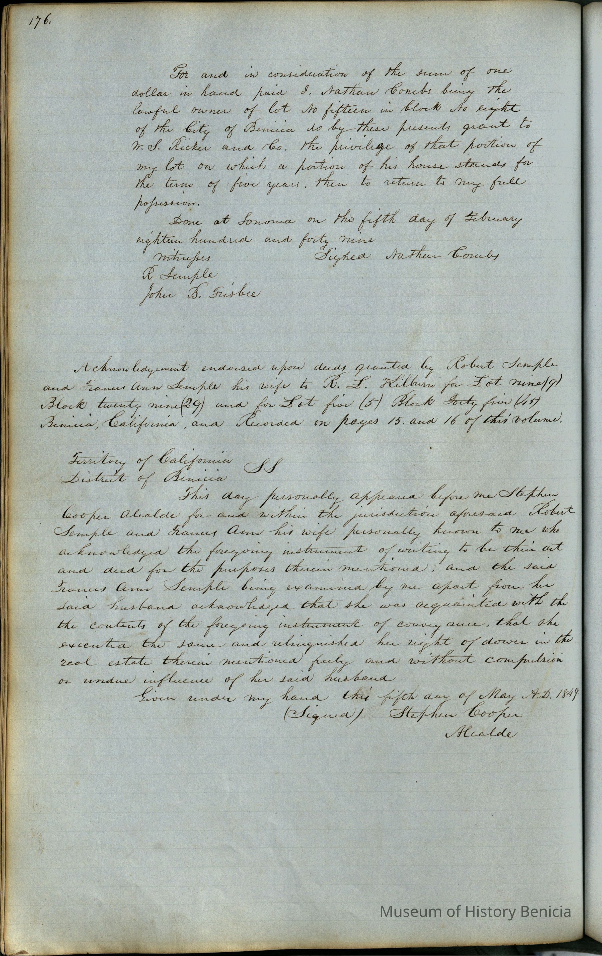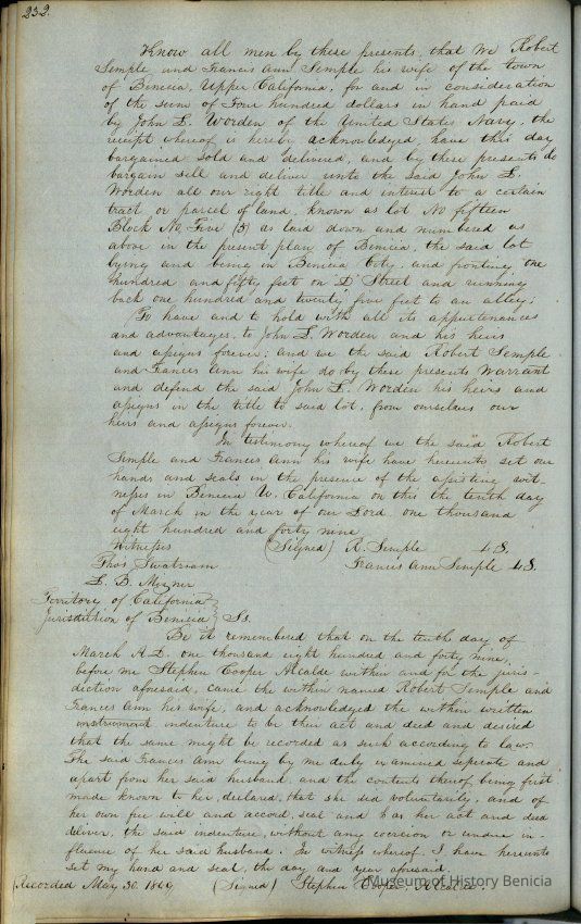 "Records of Benicia / 1847 1849 / Solano County