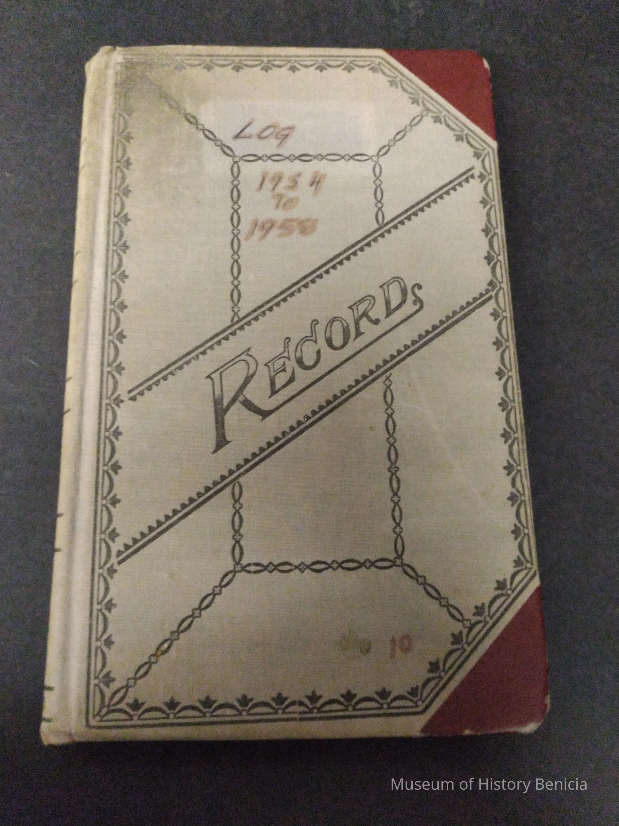 Blue/green and red Record Book - Benicia Fire Dept Log Book 1954 to 1958