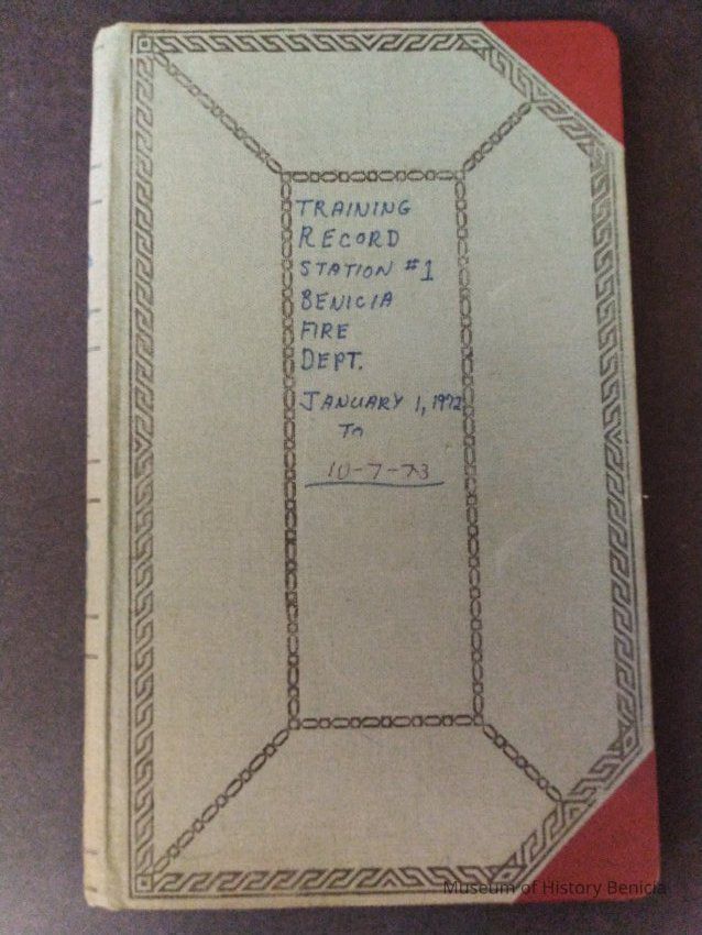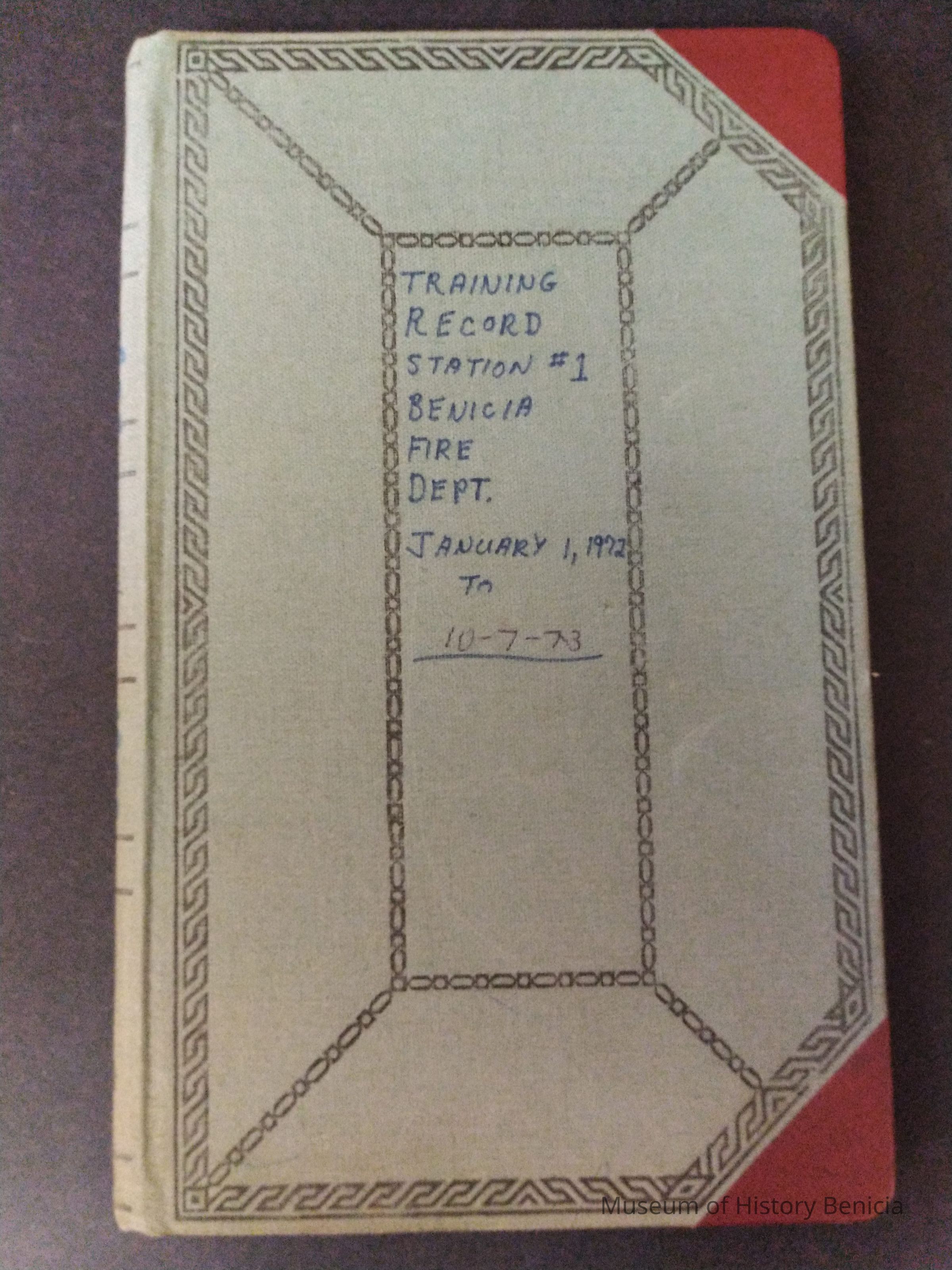Red and Green Account book - Training Record Station #1 Benicia Fire Dept. January 1, 1972 to 10-7-73