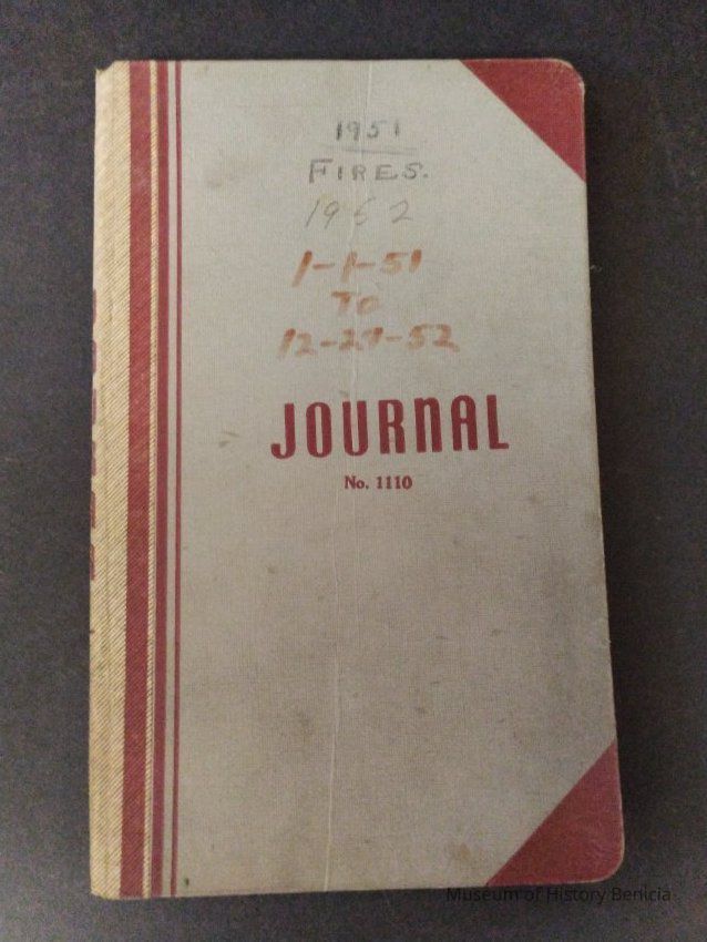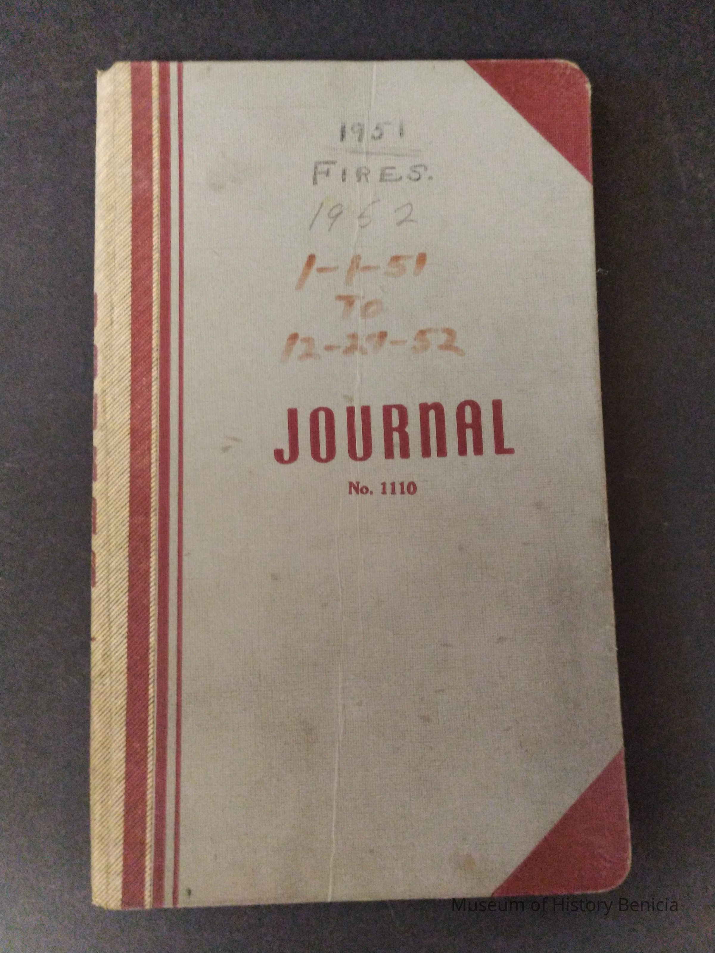 Benicia Fire Dept Fire log for 1951-1952 - red striped and gray journal book No. 1110