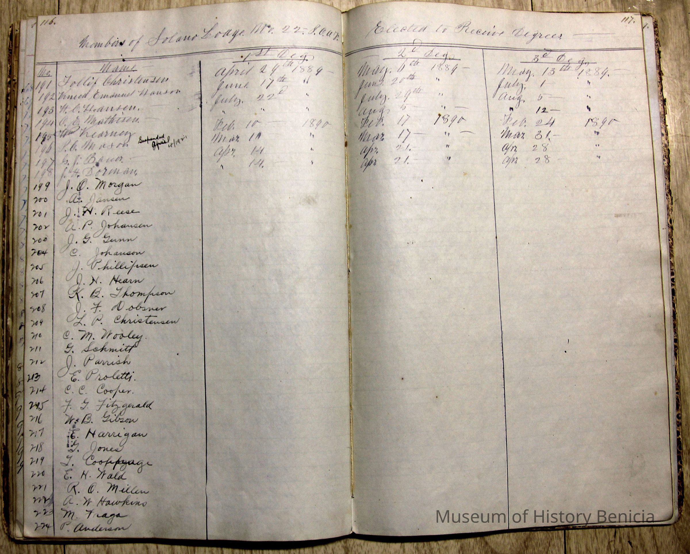 In the back are lists of the members and the "degrees" they attained in their membership.