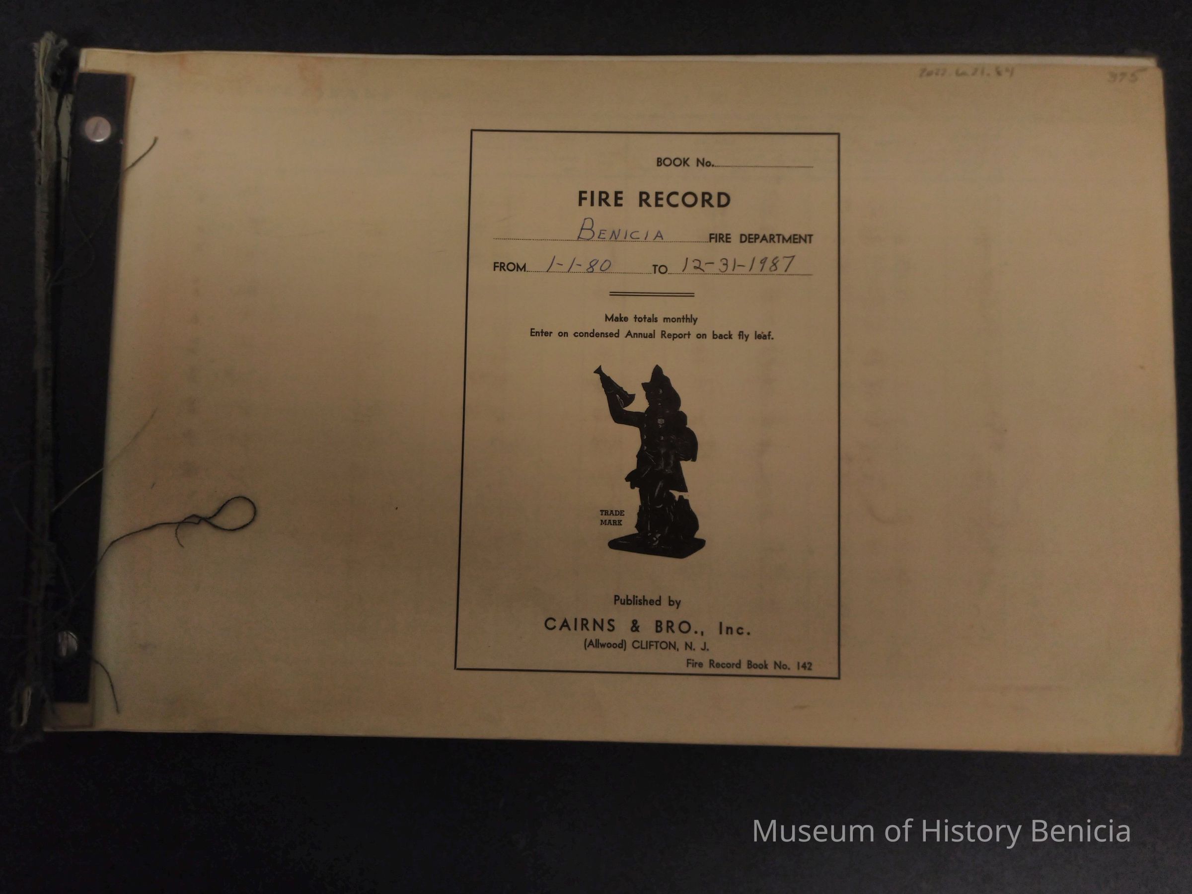 Benicia Fire Dept hanwritten record book - Fire Response