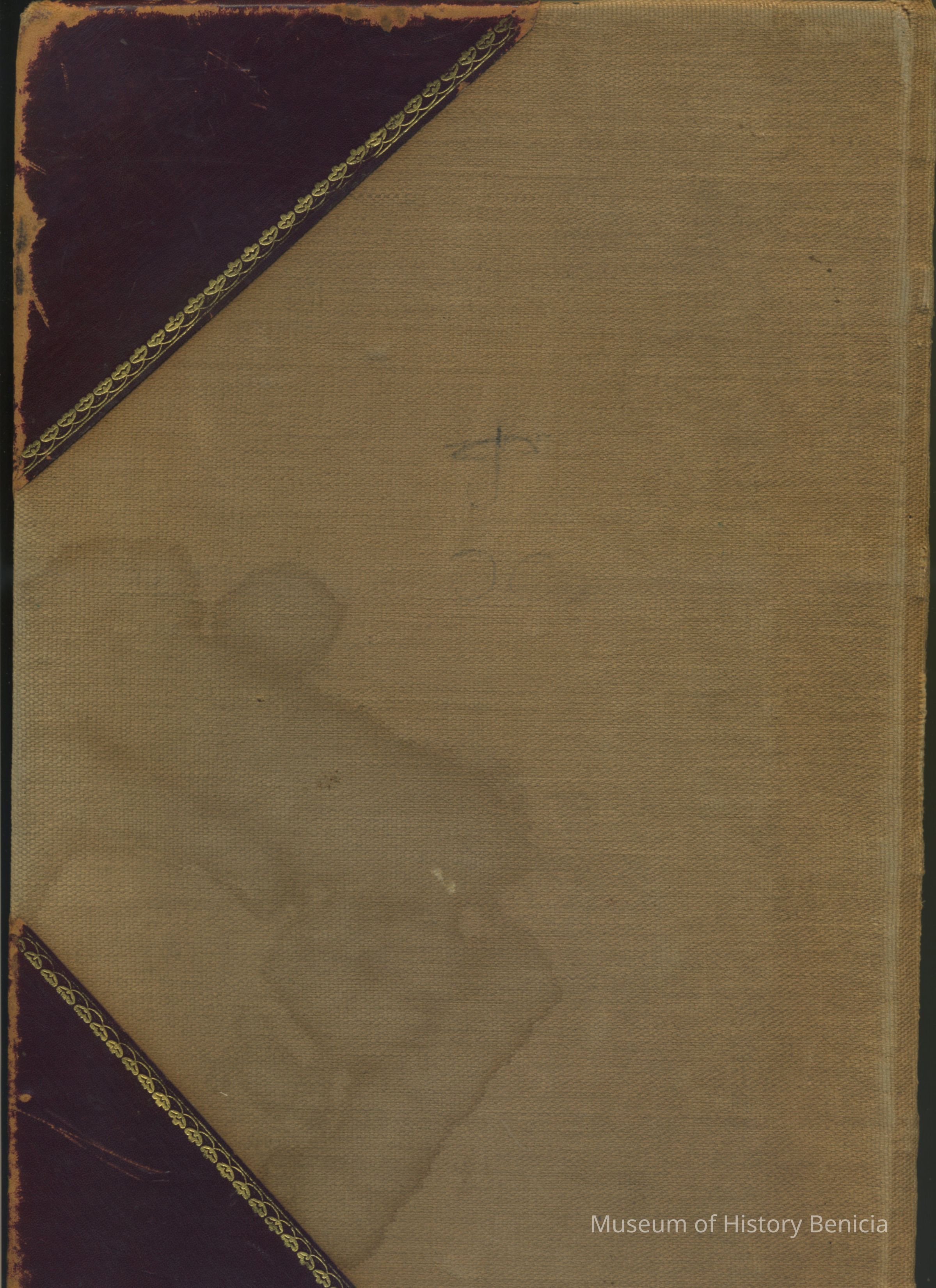 A label in the from states: "This Book was Repaired, Canvas Covered and Relettered March, 1890 by A.J. Leary, Printer, Publisher and Blank Book Manufacturer, 402-408 Sansome St., San Francisco, California."