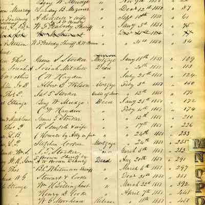 index refers to deed exchanges and mortgages but the ledger also contains court actions (i.e. the first one has Robert Semple suing William Robinson for $1,188.84 and Mr. Robinson's attorney was S.B. Mizner)Collection