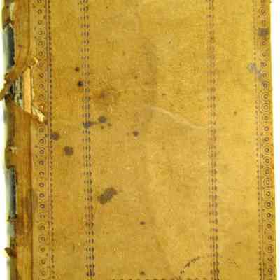 leather cover tan with dark brown embossed design;