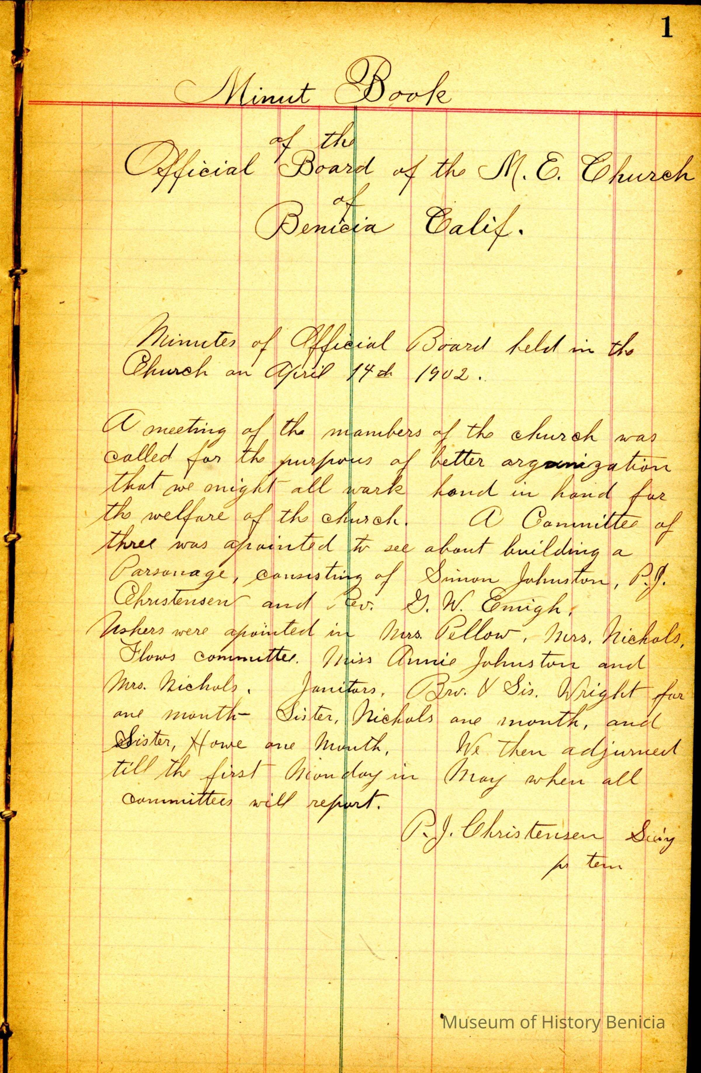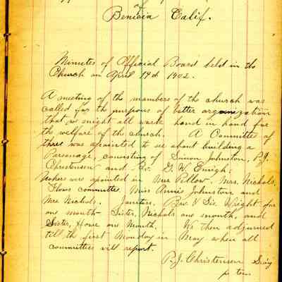 The ledger conains the minutes for the Official Board of the Benicia Methodist Episcopal Church,
