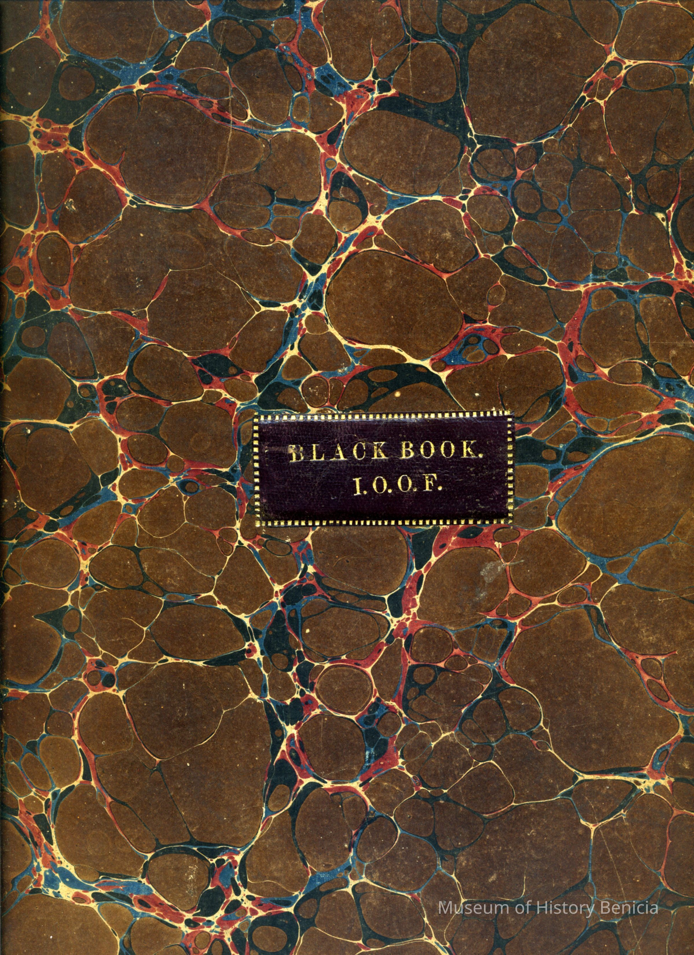 This item comes from a loan by Solano Lodge #22 in Benicia to the museum. The items were on loan for several years even after the closing of the Odd Fellows Lodge in Benicia. The loan is now being returned to the Grand Lodge IOOF of California. The returned items will be housed in their museum in San Jose. Several items from the loan were donated to BHM as a gift. This is one of those items. In addition, BHM was able to include in our collection scans on a few of the pages from the Odd Fellows ledgers before they were returned to the Grand Lodge.