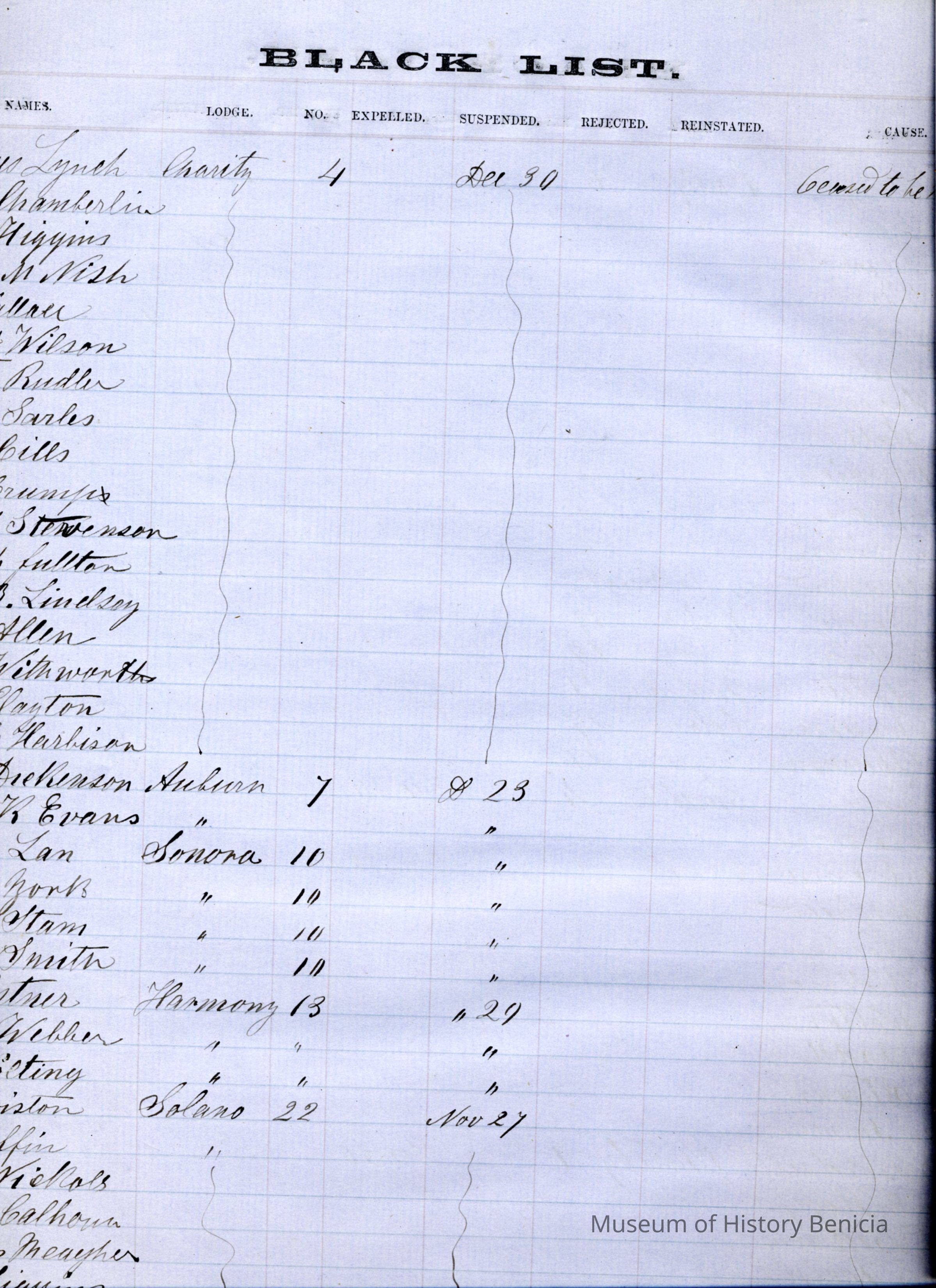 Only a few names were from the Solano Lodge # 22 located in Benicia.