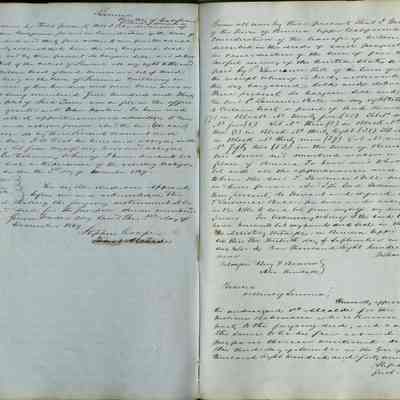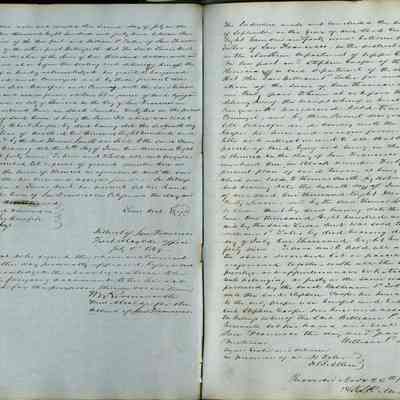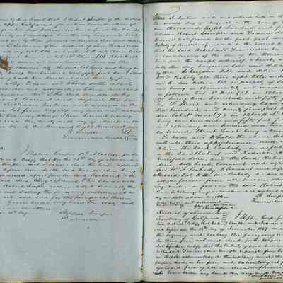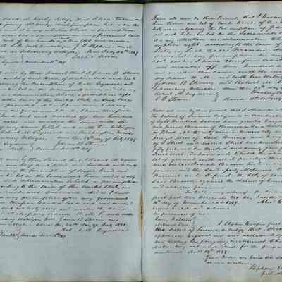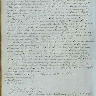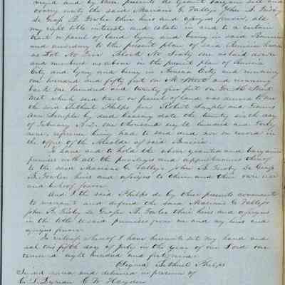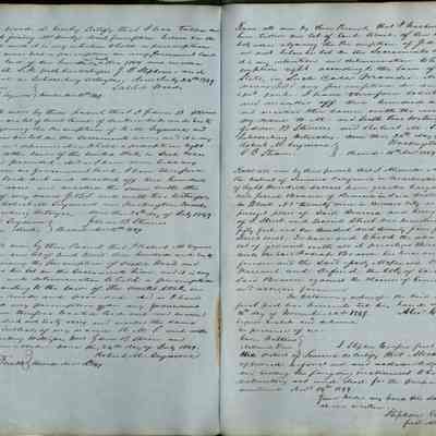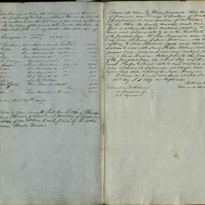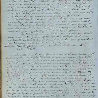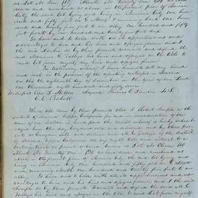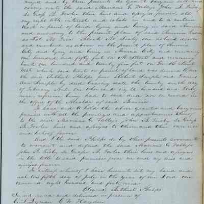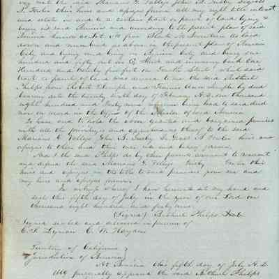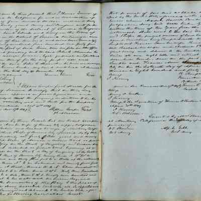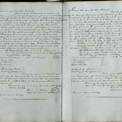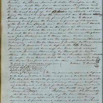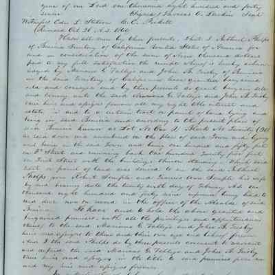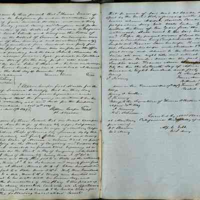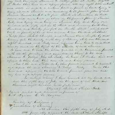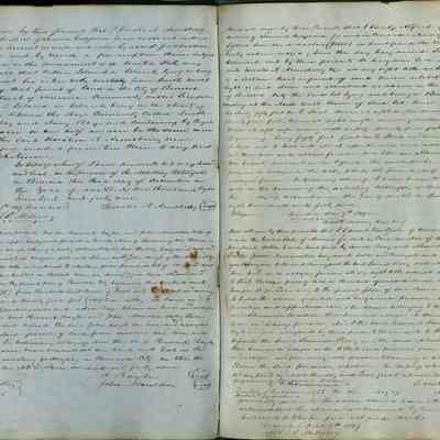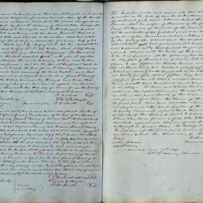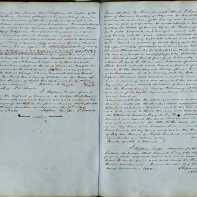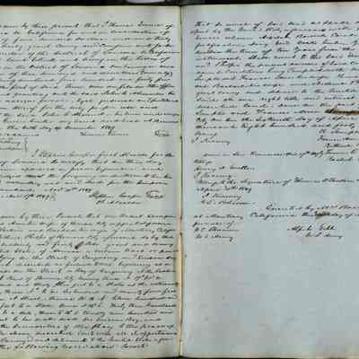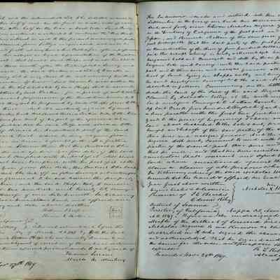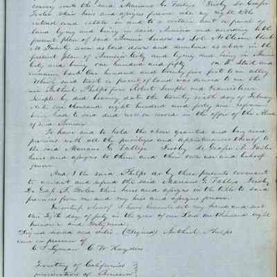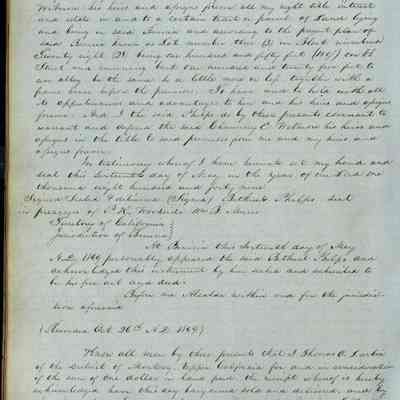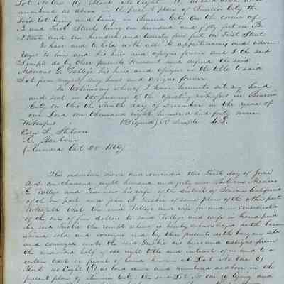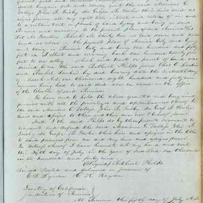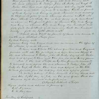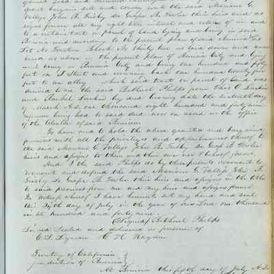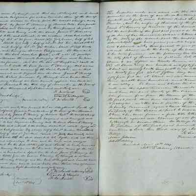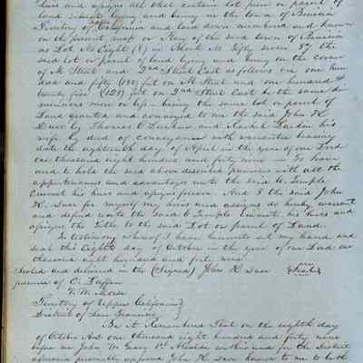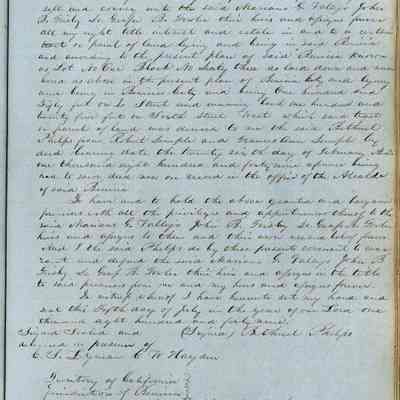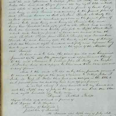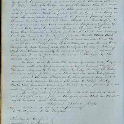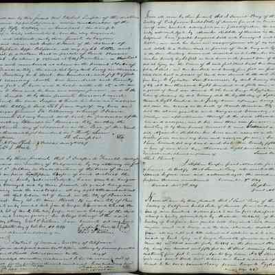 This journal/ledger contains the beginnings of Benicia including: lists and descriptions of first 12 houses in Benicia, a translation of the deed to General Vallejo by Manual Micheltorena, Governor of Calif. (1844); deed to Semple and Larkin by Vallejo (1847); deeds of properties sold by Semple and Larkin from 1847 - 1849