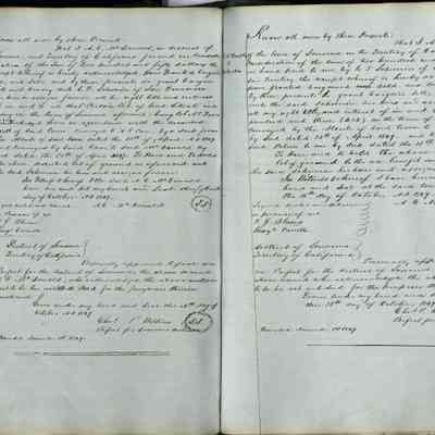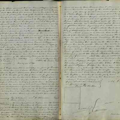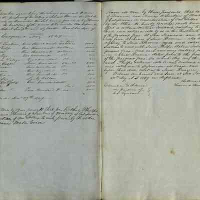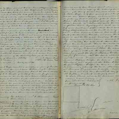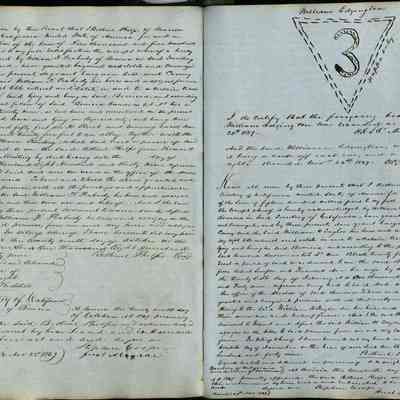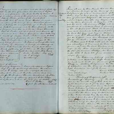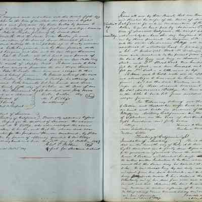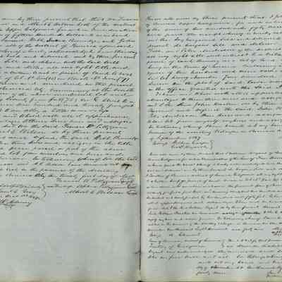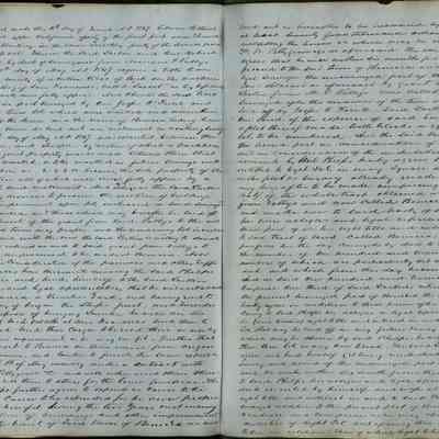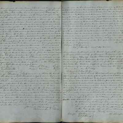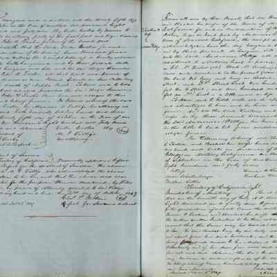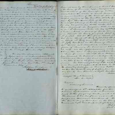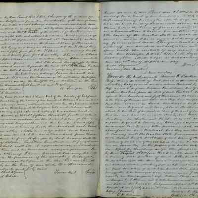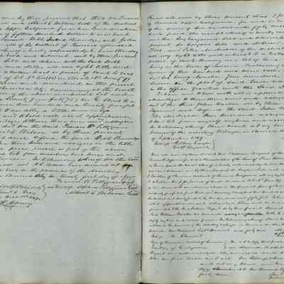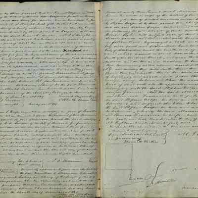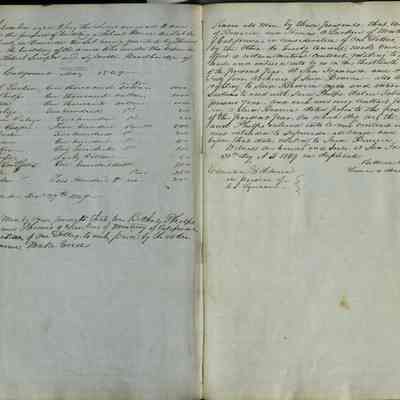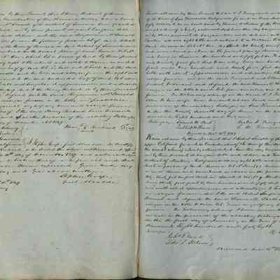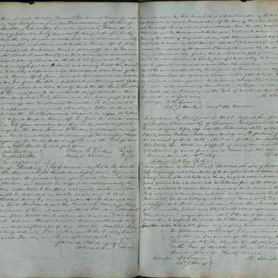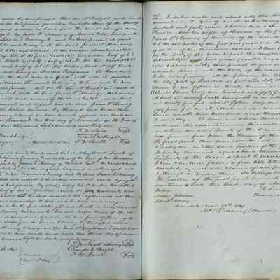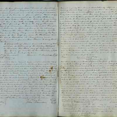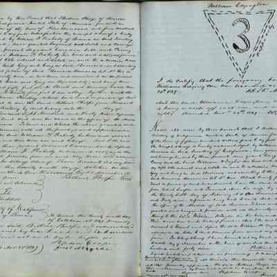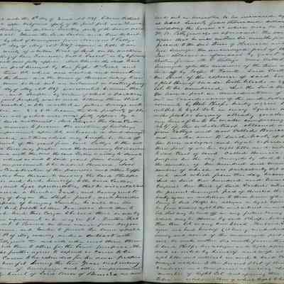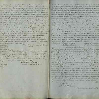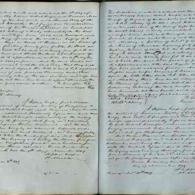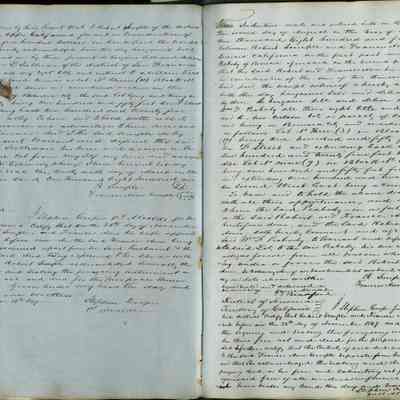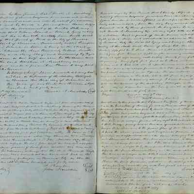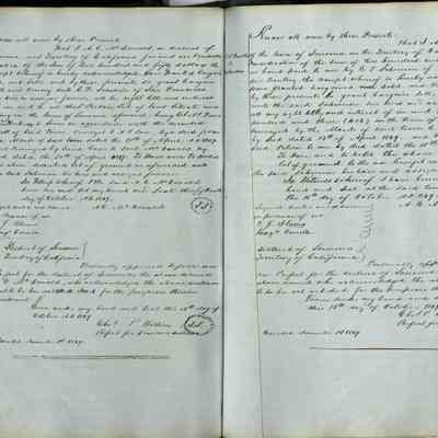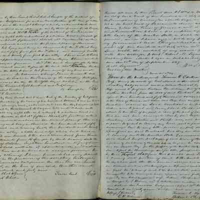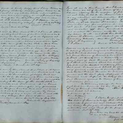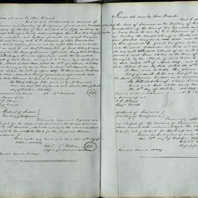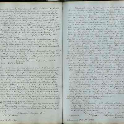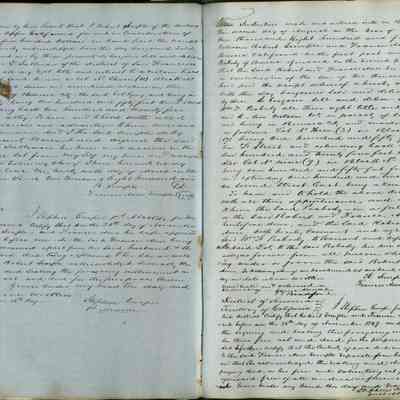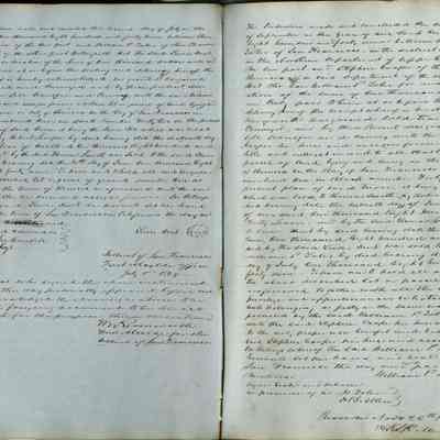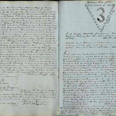 This journal/ledger contains the beginnings of Benicia including: lists and descriptions of first 12 houses in Benicia, a translation of the deed to General Vallejo by Manual Micheltorena, Governor of Calif. (1844); deed to Semple and Larkin by Vallejo (1847); deeds of properties sold by Semple and Larkin from 1847 - 1849