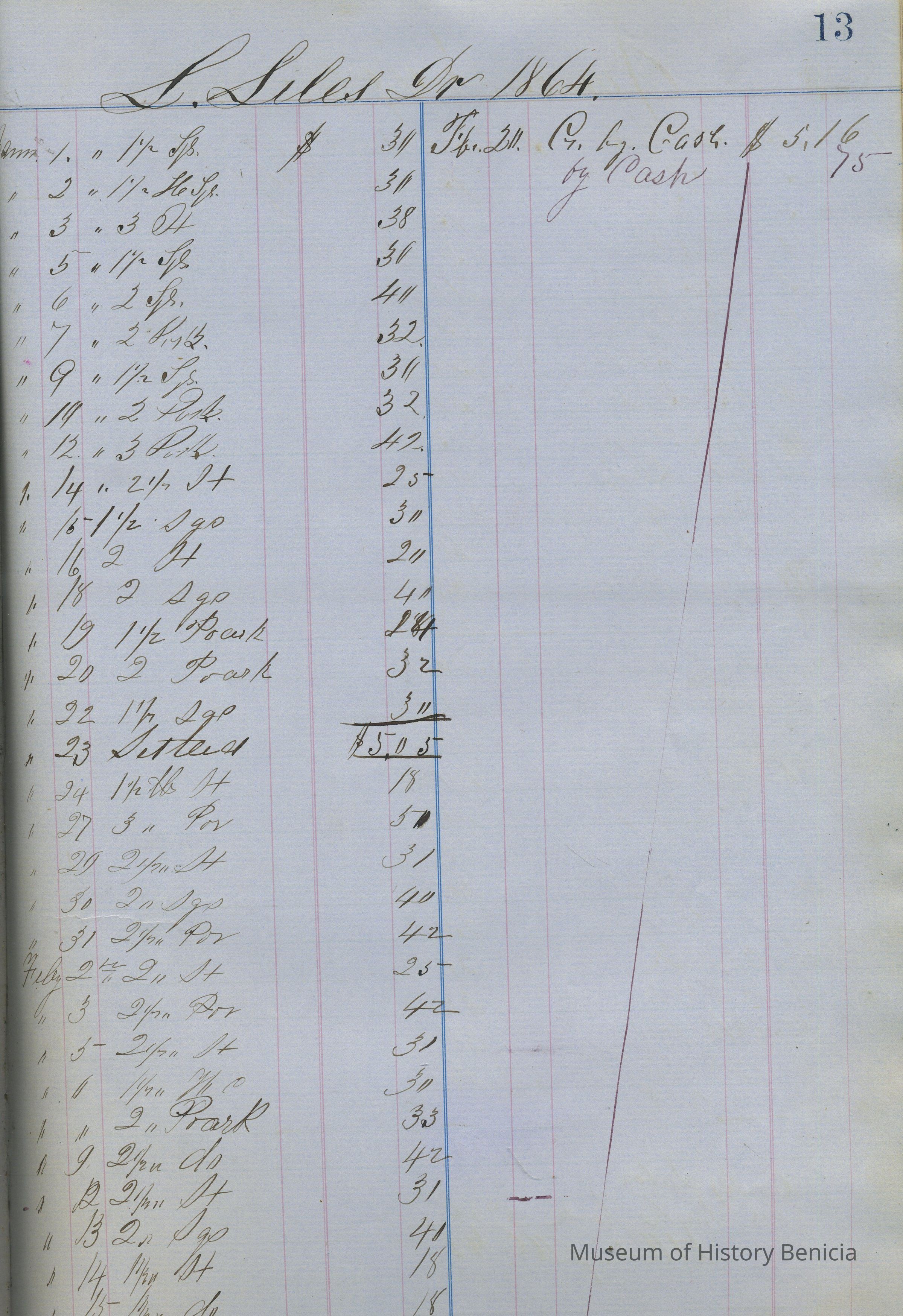 Butcher's Ledger - 1864