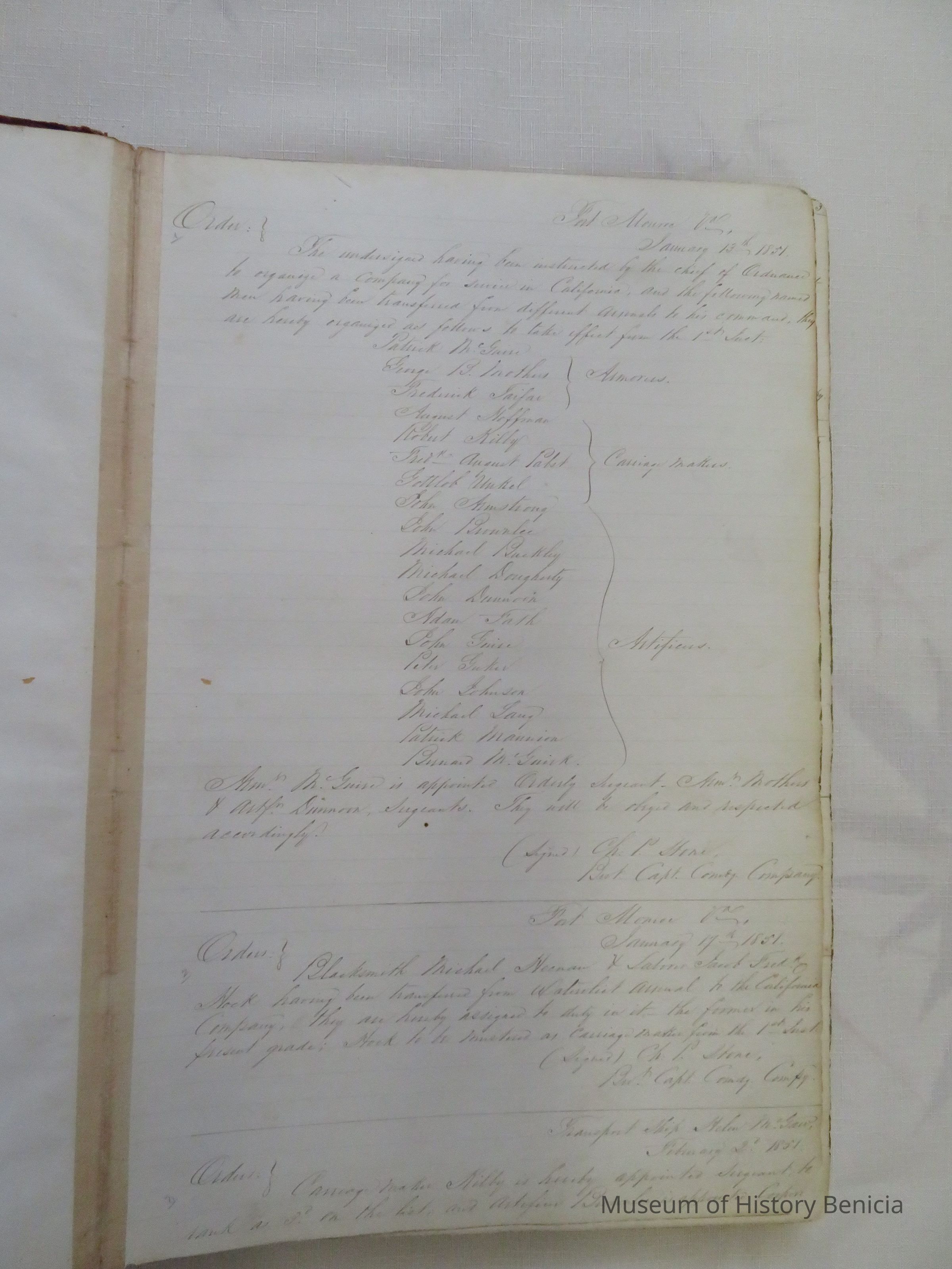 Ledger of Benicia Arsenal January 13, 1851 through March 25, 1869