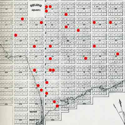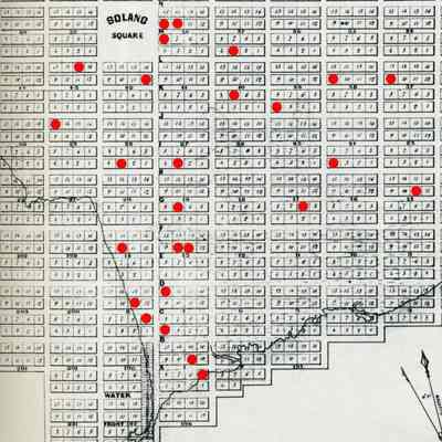 Improvements don't always mean a house or other building was constructed but it may. Attached is a copy of Barlow map from 1847 with each lot that showed an improvement marked in red.Collection