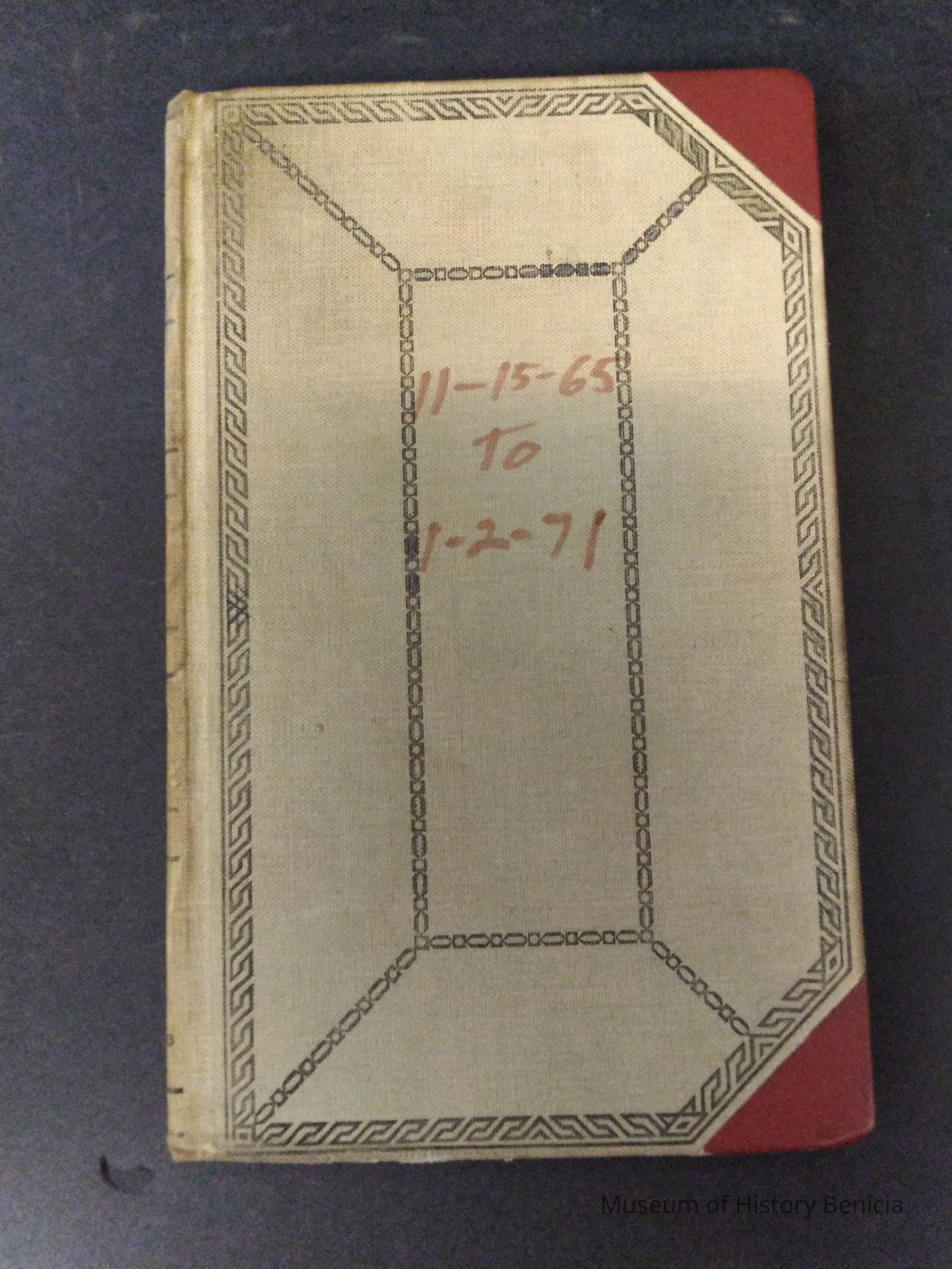 Red and Green Account Book - Daily Training Log - 11-15-65 to 1-2-71 Benicia Fire Dept
