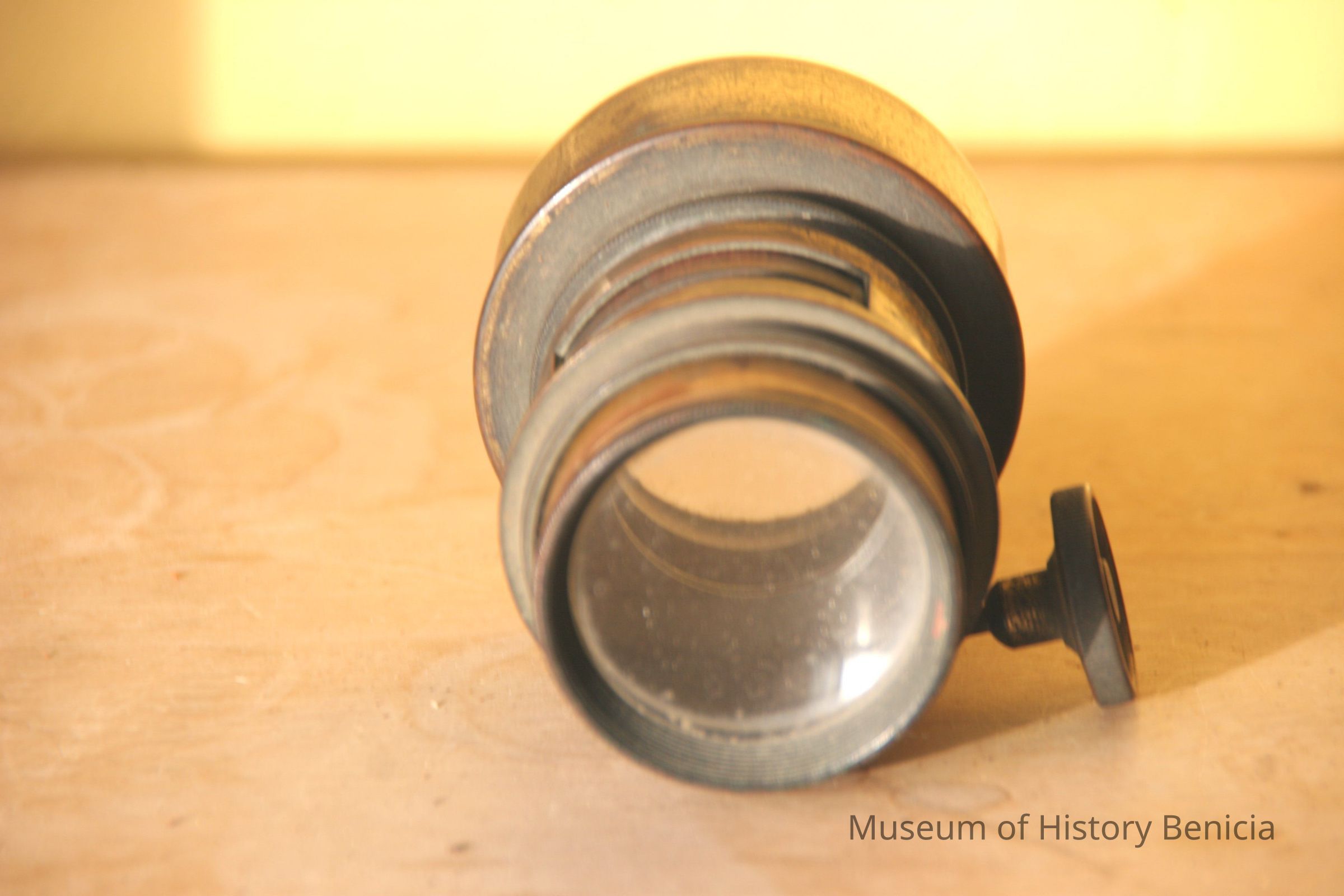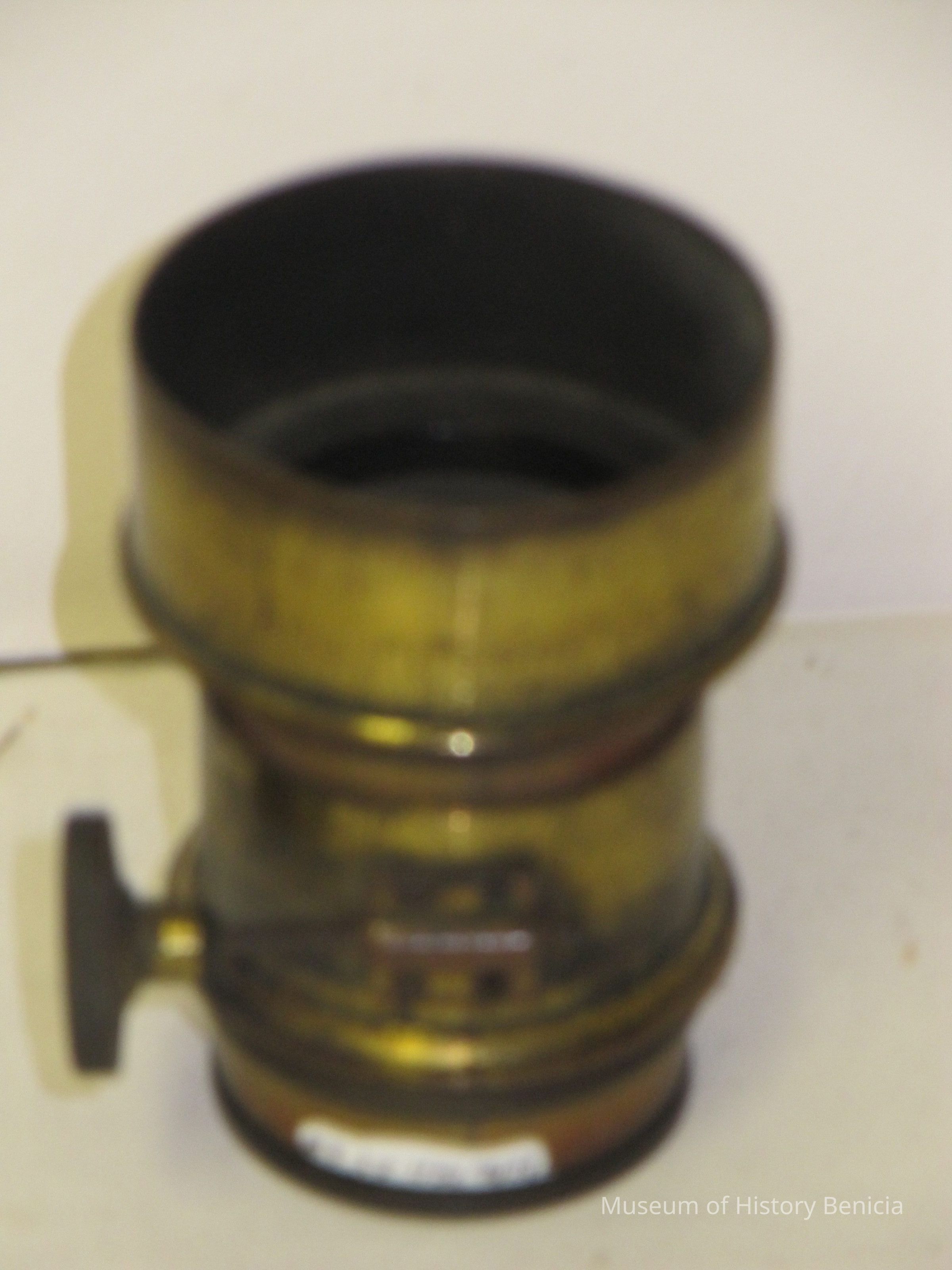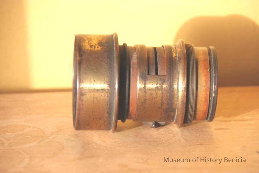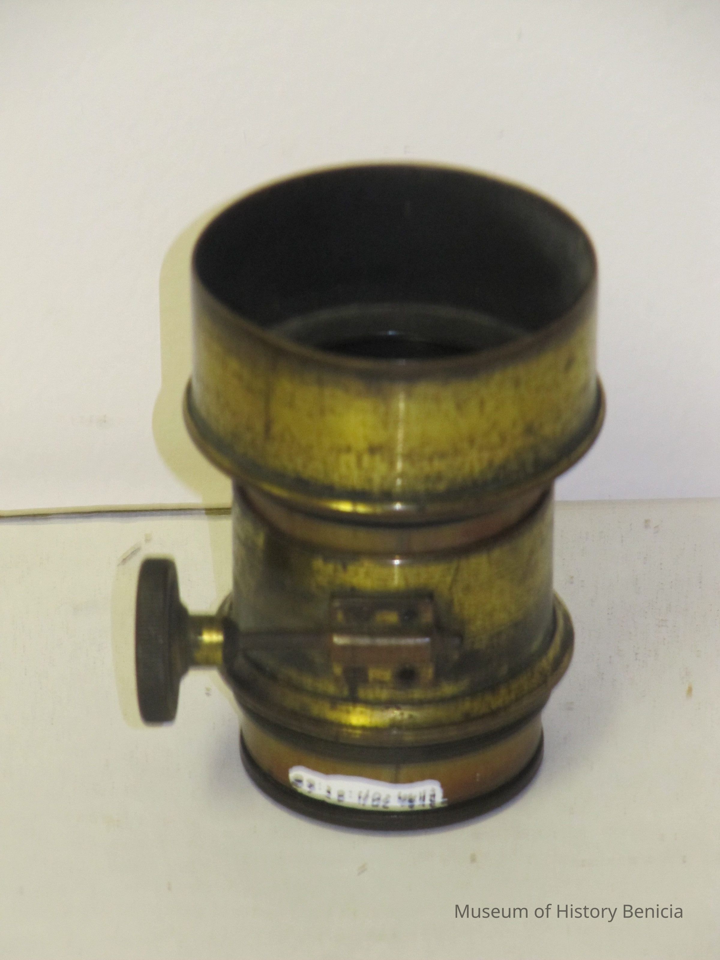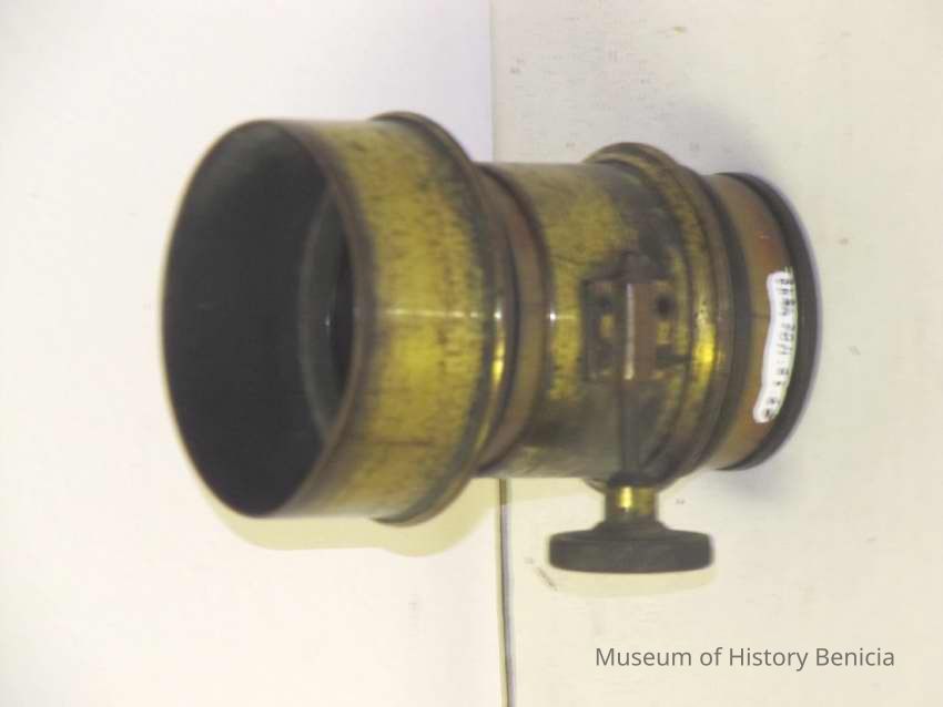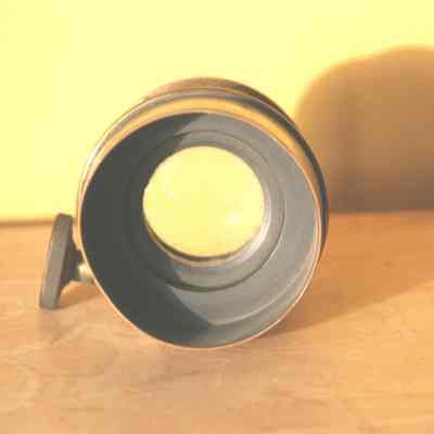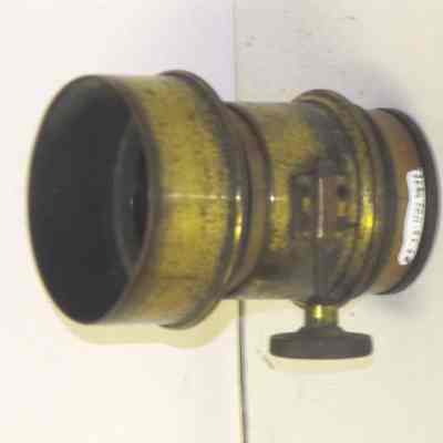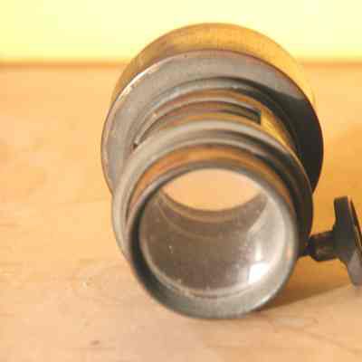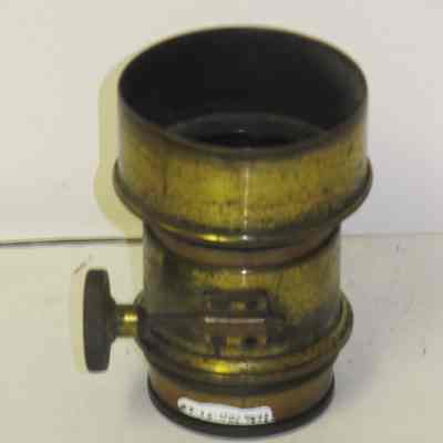 brass lens with telesoping screw mount. Lens is about 1.25" in diameter.