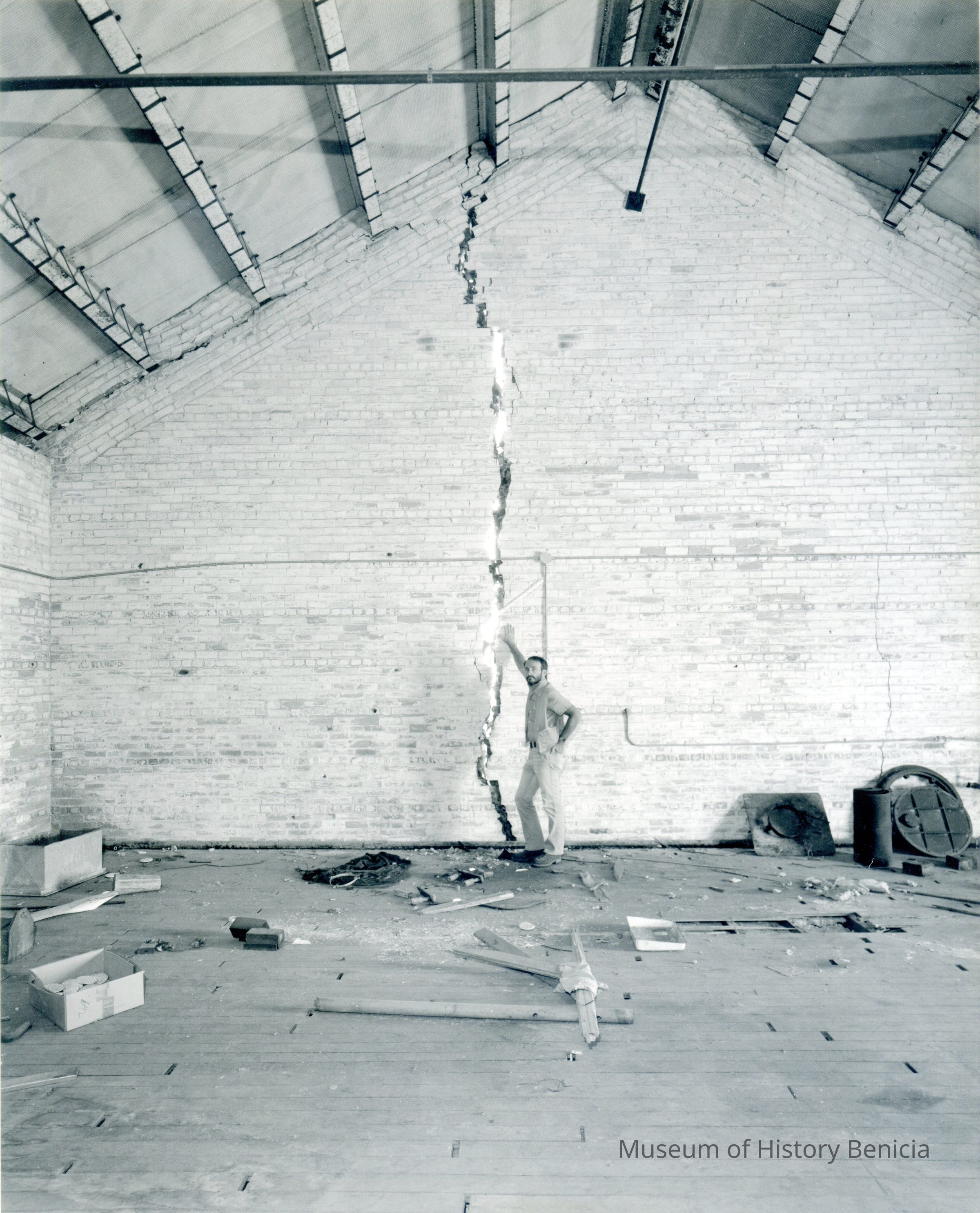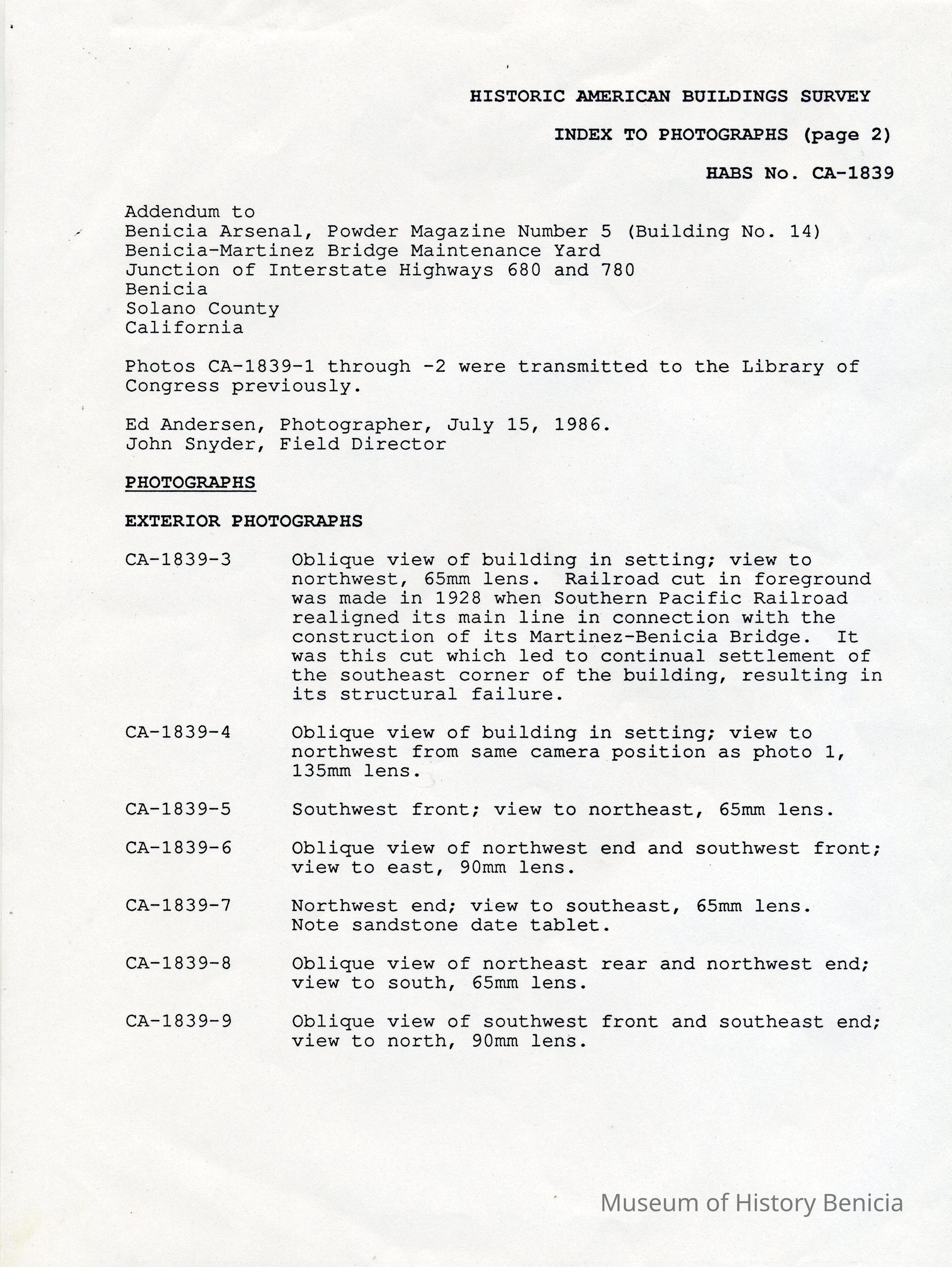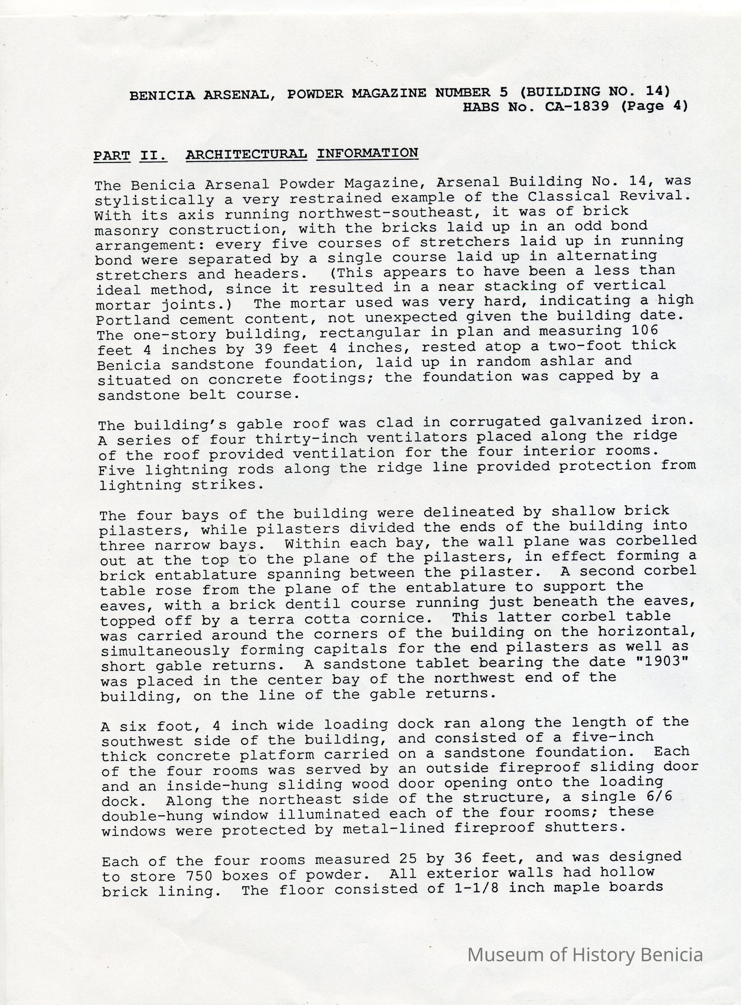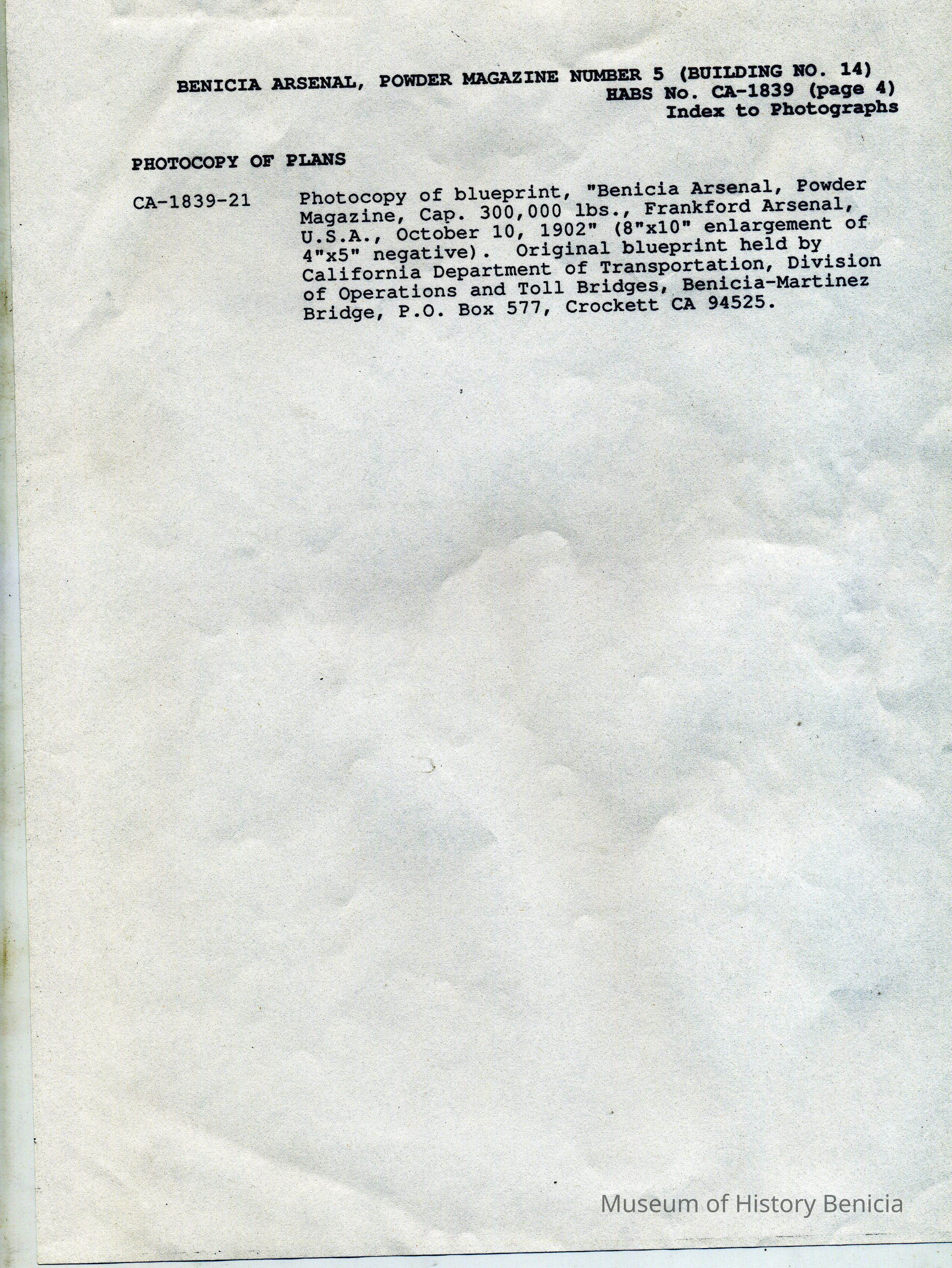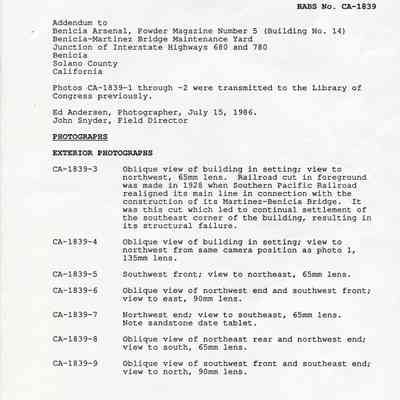 This is a letter from the California Department of Transportation to Mr. Clyde Low, a librarian at Solano Community College dated 07/05/1989. The letter explains the reason for the demolition of an Arsenal Powder Magazine which was near the Benicia-Martinez bridge. The powder magazine was built in 1903 but because of excavations for the bridge done in 1962, the building was becoming unsafe and needed to be demolished.