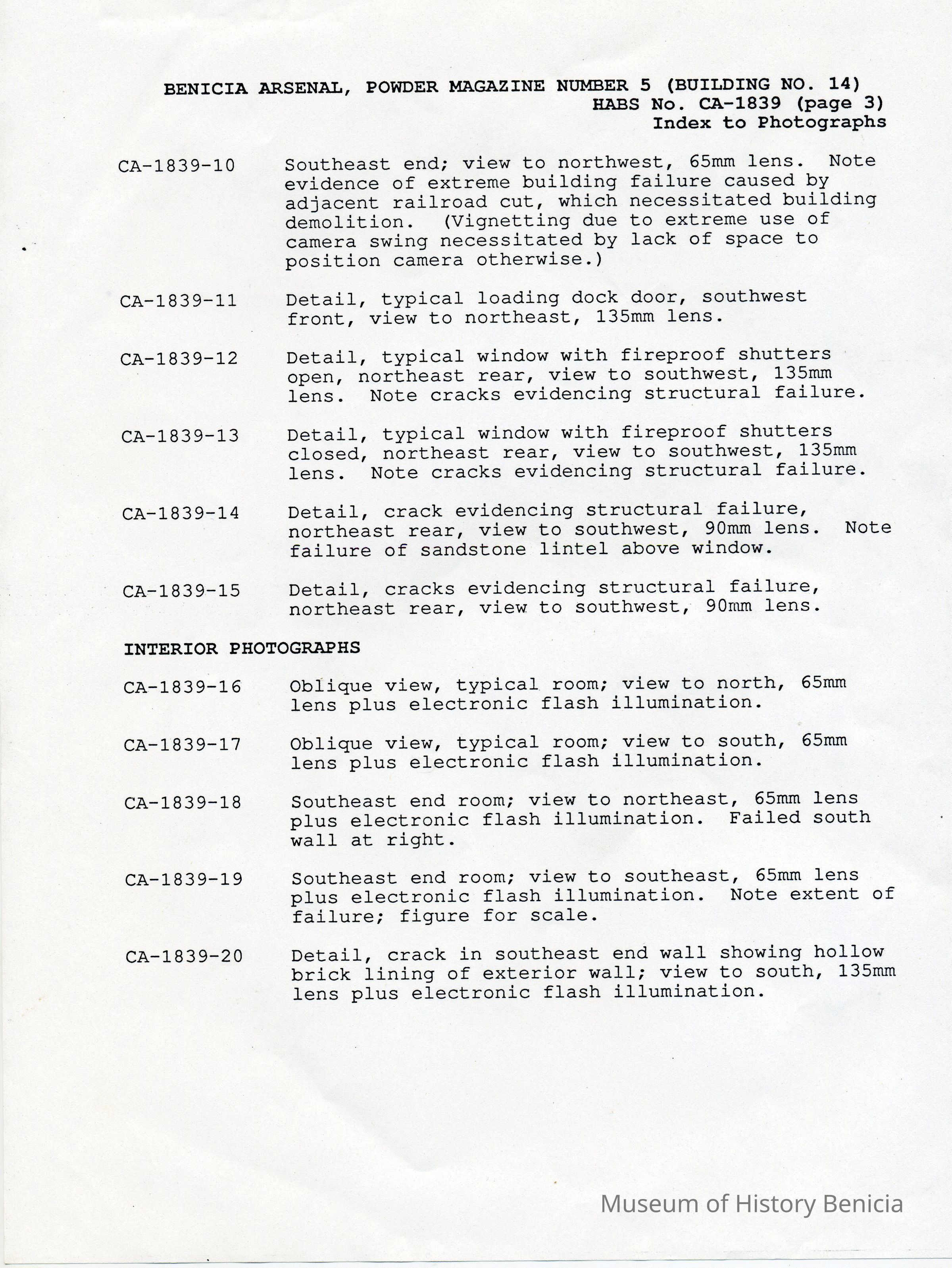 Included with the letter are photos documenting the condition of the building just prior to demolition. This was done to meet the HABS documentation requirements.