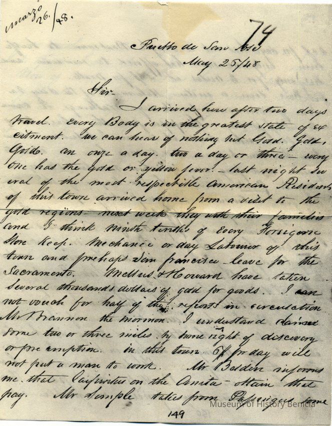 This one says Part Five of the Letters of the Gold Discovery. This is a letter from Thomas O. Larkin to Governor R. B. Mason dated 05/25/1848.Collection