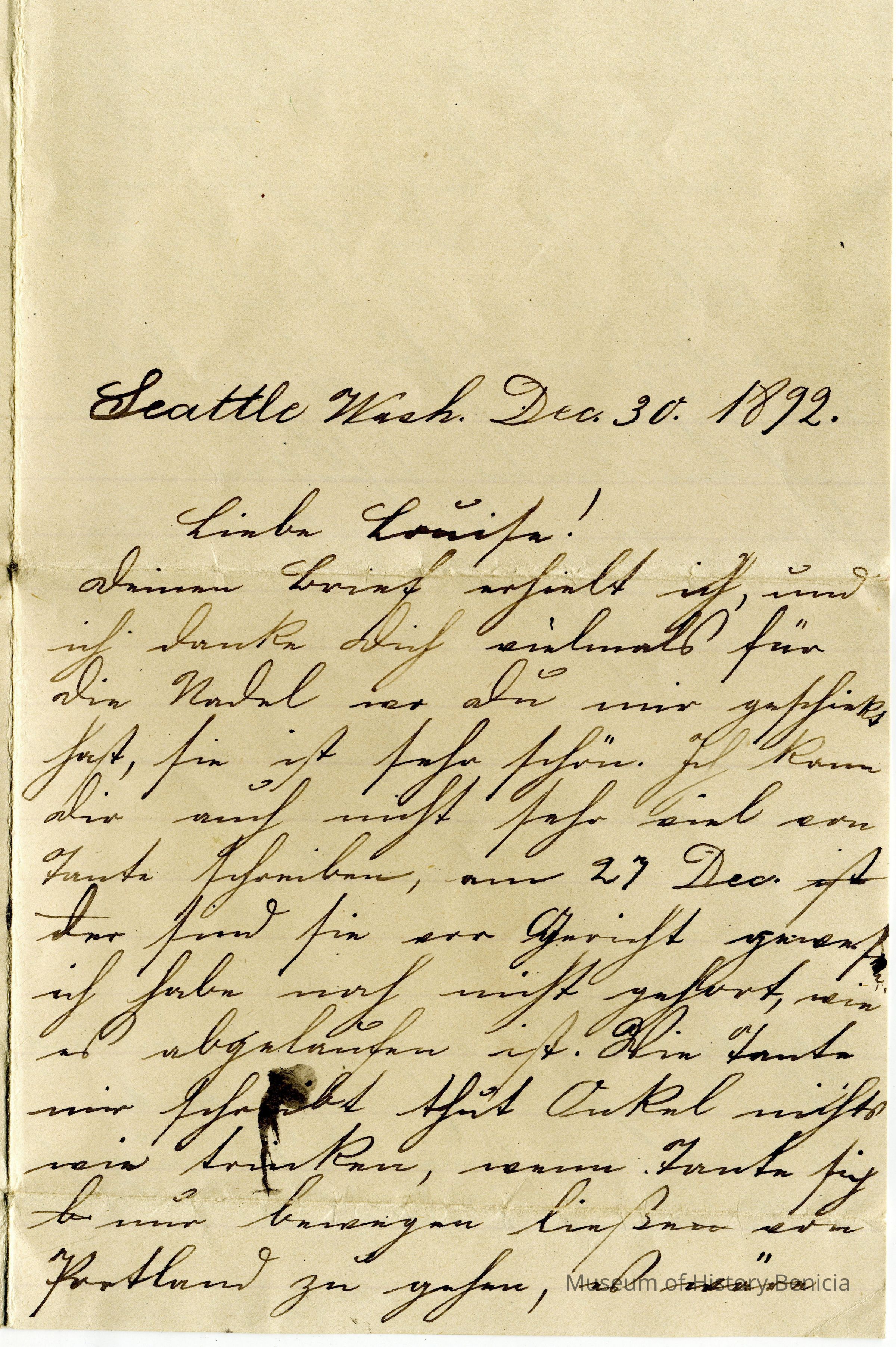 This is a letter from Anna Wassmann. It is dated 12/30/1892 .