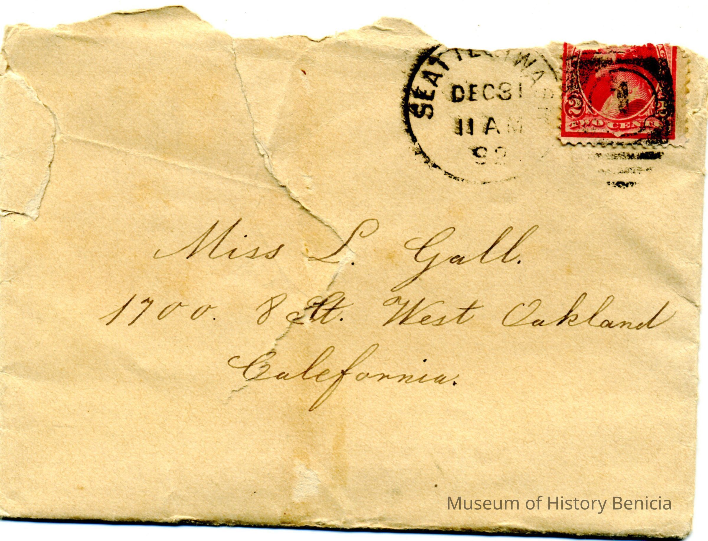 This was written between Anna Wassmann and Miss L. Gall of West Oakland, CA.