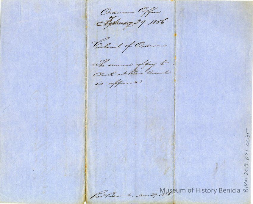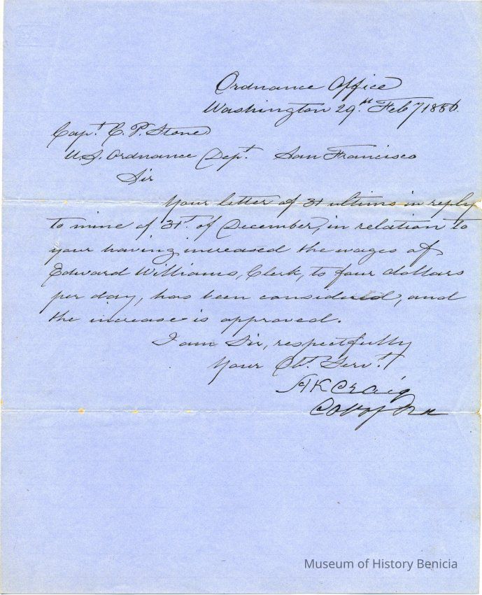 This letter just approves the increase in wages to Edward Williams, a clerk in Benicia.