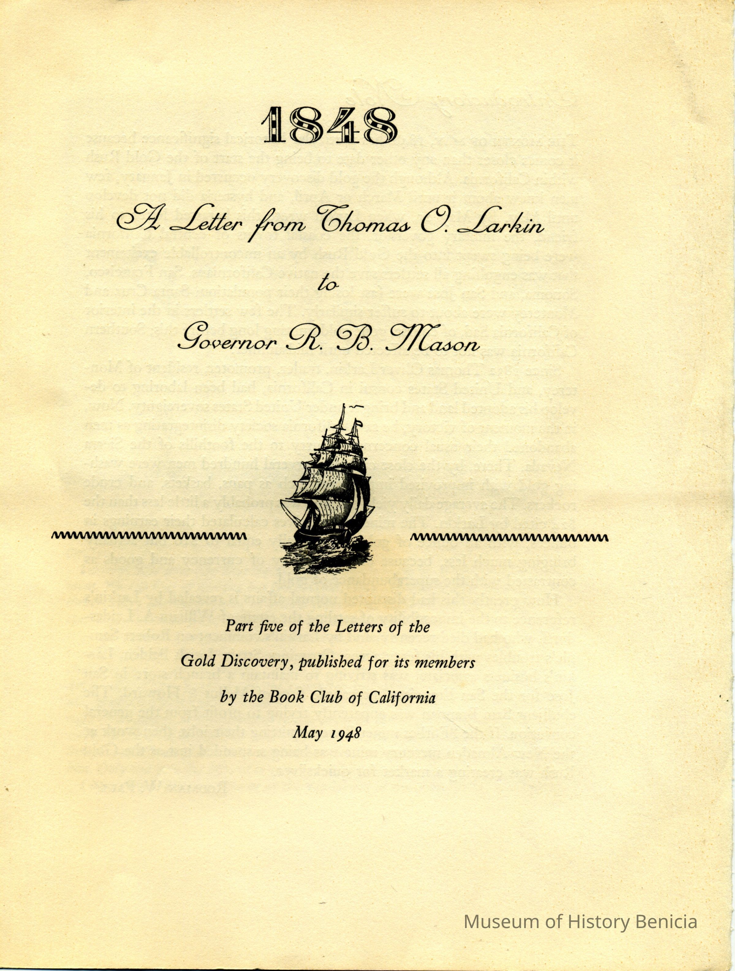 5. 1848: a letter from Thomas O. Larkin to Governor R.B. Mason.-