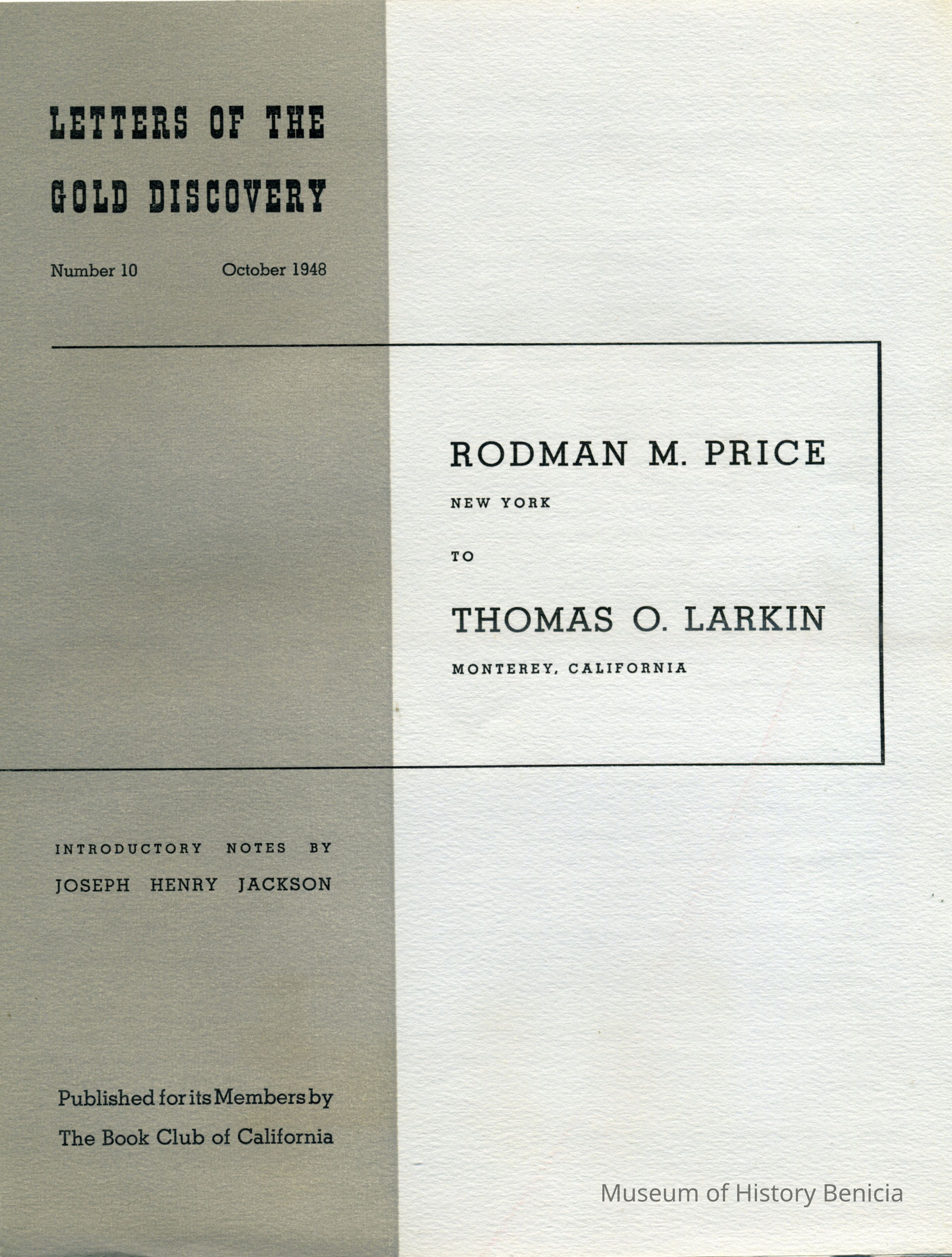10. Rodman M. Price to Thomas O. Larkin.-