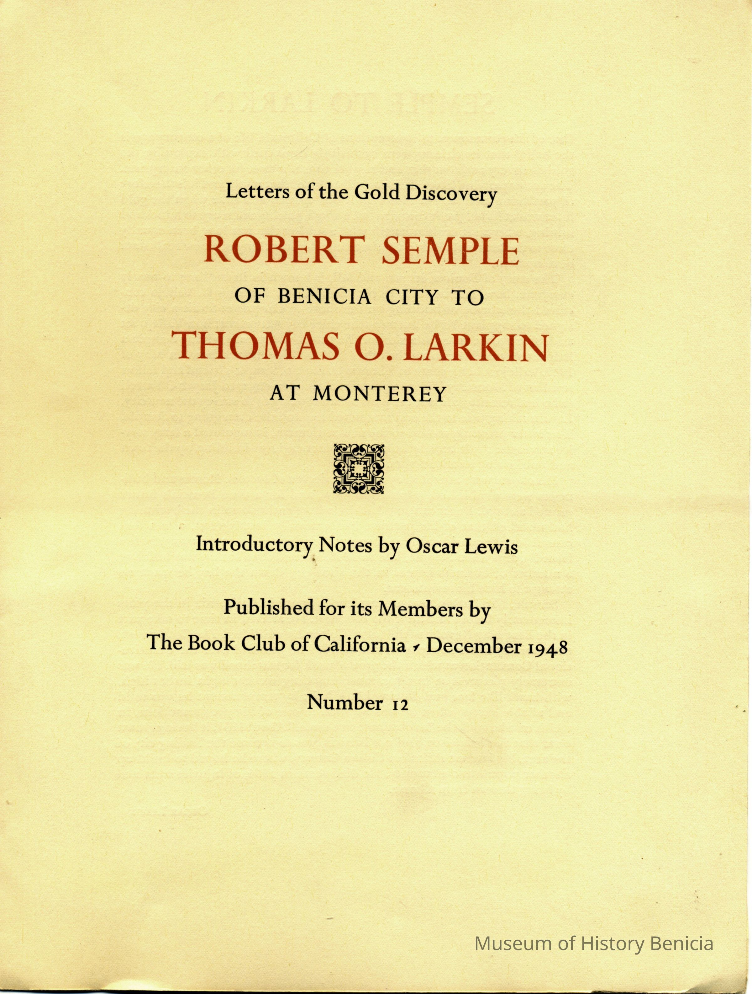 12. Robert Semple to Thomas O. Larkin.Collection