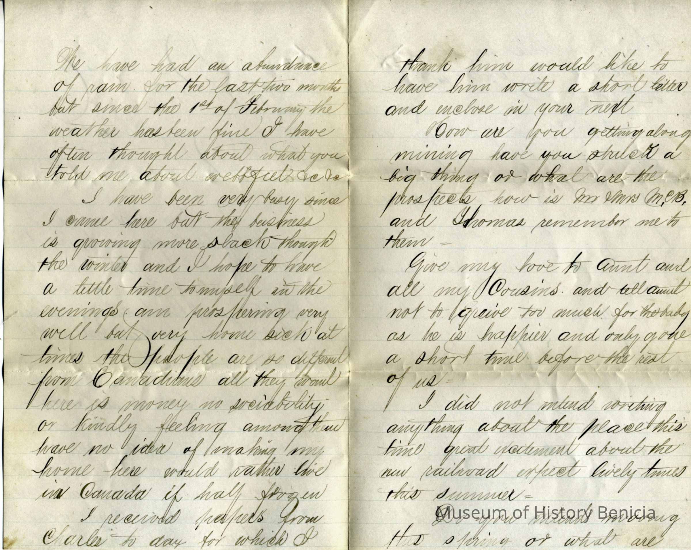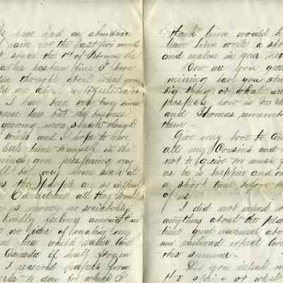 Letter from Andrew Smith to his uncle. Andrew sympathizes for his uncle over the loss of his baby. He writes, "we must acknowledge an overruling hand in such matters and trust..." Andrew acknowledges that it is very hard to bear at the time. He states that the baby has gone from a world of sin to a happier place where sin is unknown. Andrew says they've experienced an abundance of rain and he is very busy. He is hoping to have some time to himself in the evenings. Andrew writes, "I received papers from Charles today for which I thank him would like to have him write a short.." He concludes his letter by telling his uncle to give his love to his aunt and all his cousins. "Tell aunt no to grieve too much for the baby as he is happier... Hoping I hear from you soon"Collection